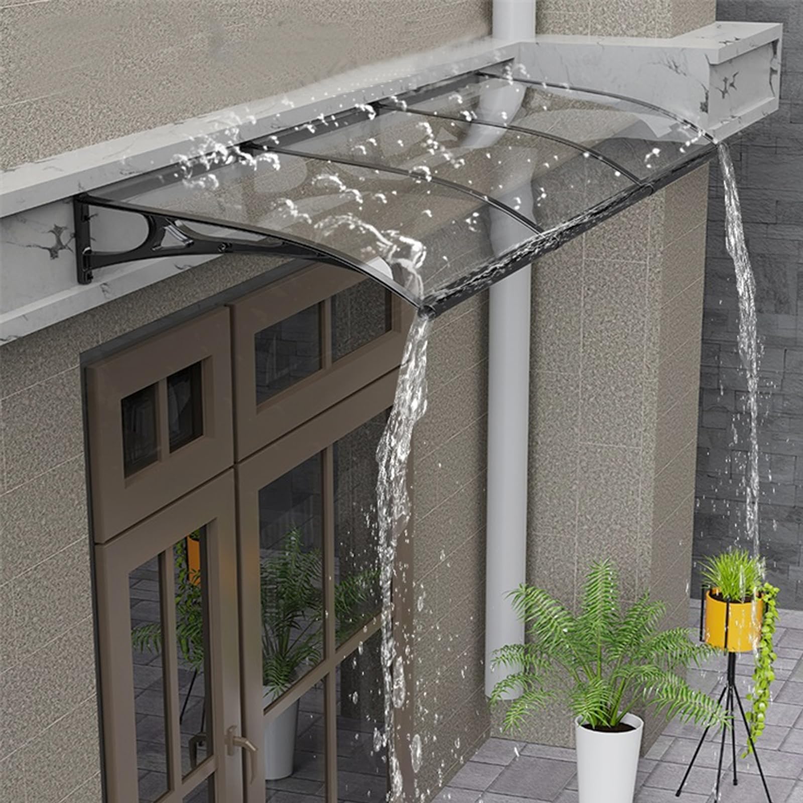 Regen, Schnee, Sonne - mit diesem praktischen Vordach für deine Eingangstür machst du einfach gar nichts mehr falsch! Die 3,5mm dicke Polycarbonat-Platte ist super stabil (hält bis zu 100kg aus!) und dabei viel leichter als Glas. Du kannst die Landschaft genießen, ohne nass zu werden - wie praktisch ist das denn?