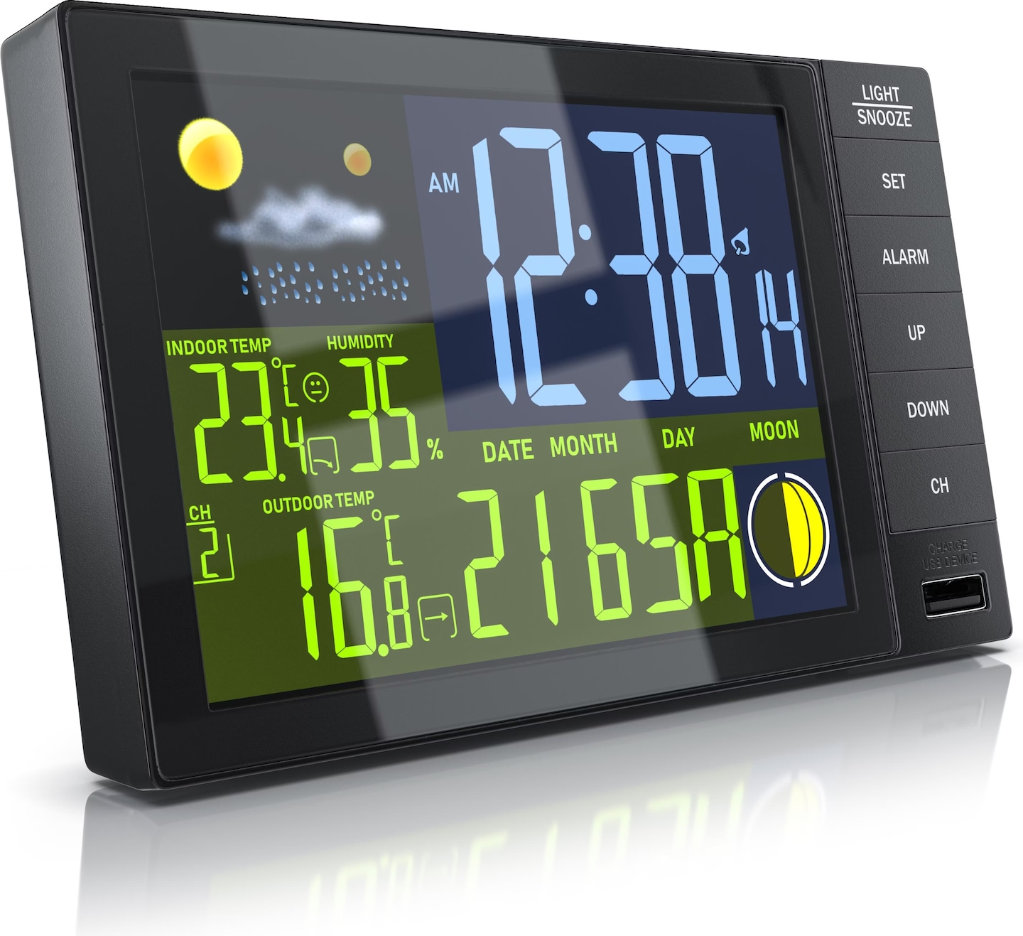 Mit den 7-in-1-Funktionen bist du immer bestens informiert. Die animierte Wettervorhersage hilft dir bei der Tagesplanung. So weißt du immer ob du Regenschirm oder Sonnencreme einpacken musst.