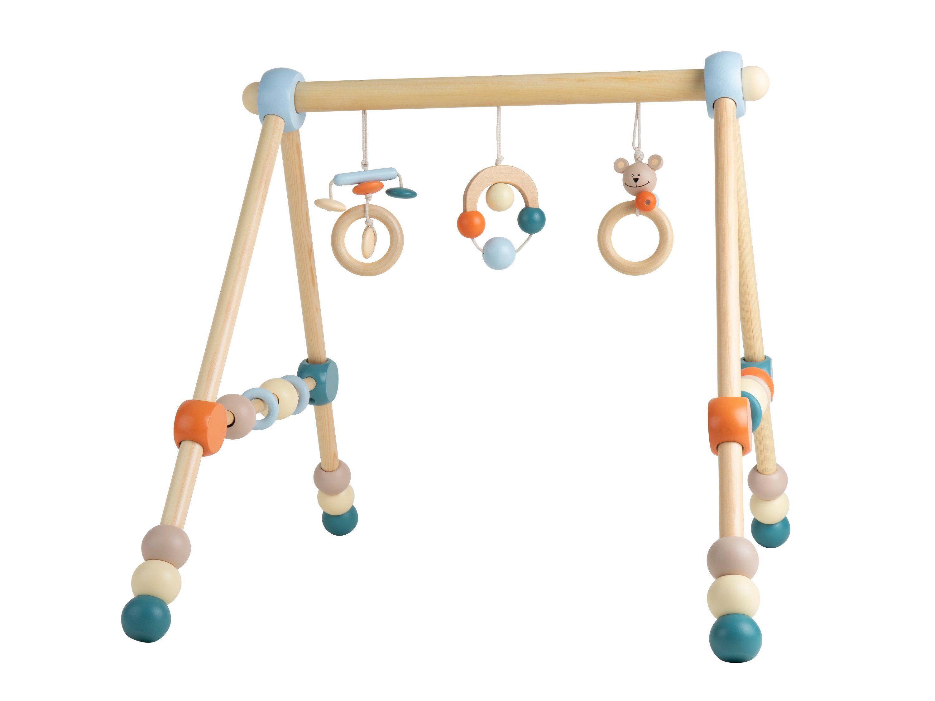 Die perfekte Beschäftigung für die Kleinsten! Dieses 4-teilige Set aus Holz und Baumwollgarn fördert die Sinne deines Babys. Mit verschiedenen Formen und sanften Farben, die die Aufmerksamkeit erregen. Alle Teile sind glatt geschliffen und gratfrei - auch zum Draufkauen während der Zahnungsphase geeignet. Das flexible Aufhängedesign ermöglicht Montage am Bettchen oder Spielbogen. So trainiert dein Baby spielerisch Greifreflexe und Koordination. Für Mädchen und Jungen ab Geburt geeignet. Ein sicheres und pädagogisch wertvolles Spielzeug, das lange Freude bereitet!