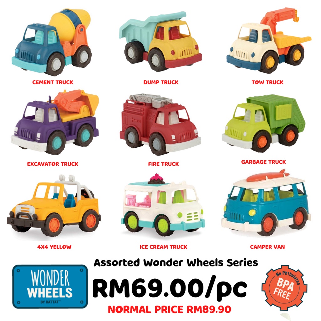 Kleine Baumeister aufgepasst! Dieses Wonder Wheels 3er Set bringt Action in jedes Kinderzimmer. Enthält einen Kipplaster mit kippbarem Container, einen Abschleppwagen mit ausfahrbarem Kranarm und einen Betonmischer mit drehender Trommel. Jedes Fahrzeug ca. 30 cm lang - perfekt für kleine Kinderhände. Aus robustem, buntem Kunststoff ohne scharfe Kanten. Super für drinnen, im Sandkasten oder am Strand. Fördert Feinmotorik und Kreativität - und das ganz ohne Batterien! Von Battat, einem Familienunternehmen seit 1897. Perfektes Geschenk für Jungen und Mädchen ab 1 Jahr. Dein Kind wird stundenlangen Spielspaß mit diesen coolen Baufahrzeugen haben!