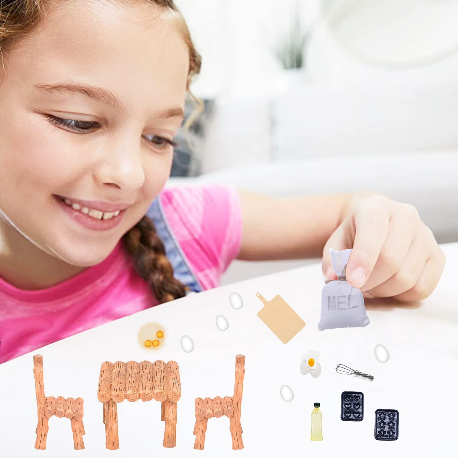 Weihnachtliche Wichtel-Werkstatt für dein Puppenhaus! Dieses niedliche Miniatur-Backset bringt festliche Stimmung in jede Spiellandschaft. Enthalten sind Tisch, 2 Stühle, Teekanne, Tassen, Eier, Mehl, Mixer und viele weitere Backutensilien - über 30 Teile! Aus hochwertigem Holz, Harz und Metall gefertigt - robust und detailgetreu. Fördert die Kreativität von Kindern und die Feinmotorik. Perfekt für Rollenspiele, Eltern-Kind-Interaktion oder als Sammlerstück. Die glatten Oberflächen ohne scharfe Kanten sind sicher für Kinder. Ideal als Weihnachtsgeschenk oder zur Ergänzung deiner Puppenhaus-Sammlung. Sieht das nicht bezaubernd aus? Deine Wichtel haben jetzt ihre eigene Weihnachtsbäckerei!