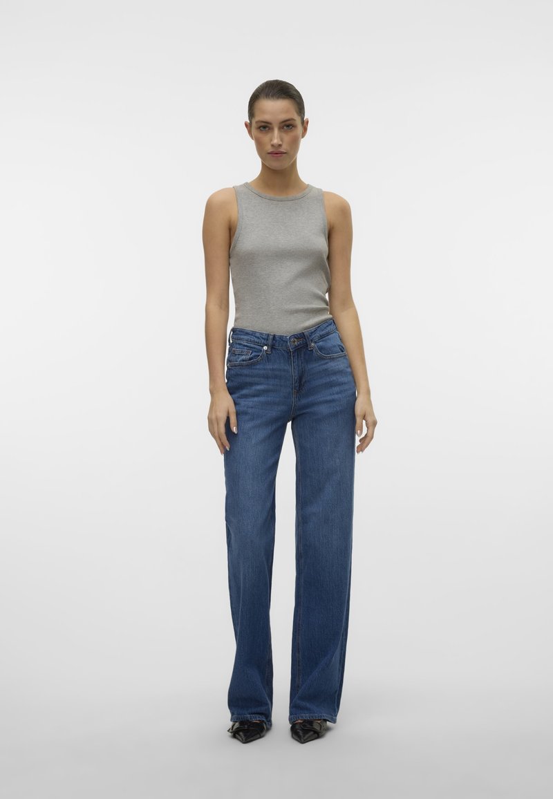 Volumen angesagt! Diese Vero Moda Wide Fit Jeans gibt dir den lässigen Baggy-Look, der gerade voll im Trend liegt. Mid Rise sitzt bequem an der Taille, Stonewashed-Optik sorgt für den perfekten Used-Look. Aus 98% Baumwolle und 2% Elasthan - super bequem und dehnbar. Kombinier sie mit einem Slim Fit Oberteil für die Betonung deiner Taille oder trau dich an den Oversize-Look mit weitem Shirt. Mit Reißverschluss, Knopfleiste und allen praktischen Taschen, die du brauchst. Für alle, die es bequem und stylisch mögen - diese Jeans wird dein neuer Liebling!