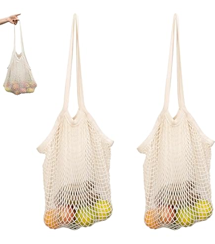 Perfekt für den umweltfreundlichen Einkauf! Diese 2 praktischen Netztaschen aus robuster Baumwolle sind deine neuen Begleiter. Mit 35x36cm groß genug für Obst, Gemüse oder Strandspielzeug. Die atmungsaktive Netzstruktur hält Lebensmittel länger frisch. Super flexibel: Kurze Griffe für die Hand, lange Griffe für die Schulter oder den Kinderwagen. Einfach in der Maschine waschbar und schnell trocknend. Leicht zusammengefaltet - passt in jede Handtasche. Perfekt für Supermarkt, Wochenmarkt, Strand oder als Spielzeugbeutel. Mach Schluss mit Plastiktüten und sei nachhaltig unterwegs! Einfach praktisch und umweltschonend.