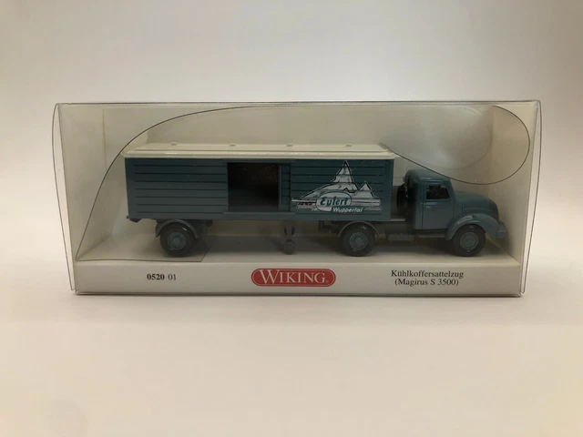 Wow, für Modellbau-Fans ist dieser Wiking LKW ein absolutes Highlight! Ein Kühlkoffersattelzug von Magirus im klassischen Migros-Design in mintgrüner Farbe. Im Maßstab 1:87 für die Spur H0 - perfekt für deine Modellbahnanlage oder Sammlung. Das Modell ist super detailliert und liebevoll verarbeitet. Sieht aus wie das Original, nur in klein! Der Kühlkoffer und der Sattelzug sind authentisch nachgebildet. Ein echter Hingucker in jeder Vitrine oder auf der Anlage. Wiking ist bekannt für hochwertige Modelle mit perfekten Details. Ob für Sammler oder für die Eisenbahn - dieses Stück ist einfach klasse! Einfach auspacken und sich an den feinen Details erfreuen. Macht in jeder Sammlung eine gute Figur und ist ein tolles Gesprächsthema für alle Modellbau-Begeisterten. Qualität, die man sieht und die Freude macht!