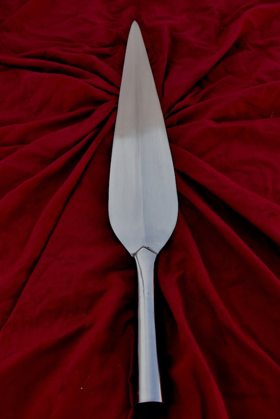 Fühl dich wie ein echter Wikinger-Krieger! Dieser handgeschmiedete Speerkopf aus Eisen ist eine authentische Nachbildung historischer Wikinger-Waffen. In Rautenform mit verwitterter Oberfläche - sieht aus wie ein Original-Fundstück. Gesamtlänge: 29cm, Schaft-Durchmesser: 23,38mm - passt auf jeden Eschenholz-Stab. Mit Loch im Schaft für sichere Befestigung durch Nageln oder Schrauben. Die Spitze ist stumpf - ideal für Reenactment, LARP oder als Deko-Stück. Jeder Speerkopf ein Unikat - handgeschmiedet mit Liebe zum Detail. Perfekt für Mittelalter-Fans, Sammler oder als besonderes Geschenk. Sieht mega aus an der Wand oder in einer Vitrine. Tauche ein in die Welt der Wikinger - mit diesem beeindruckenden Speerkopf!
