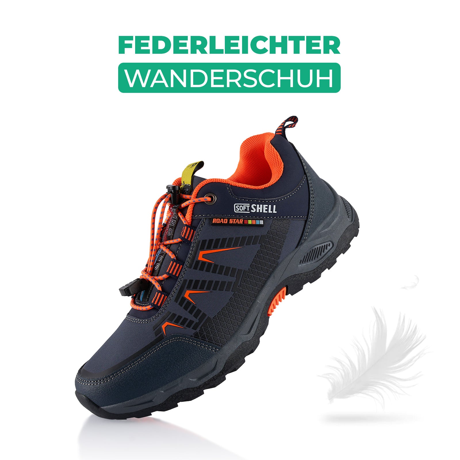 Entdecke die Natur mit Leichtigkeit! Die Wildora Wanderschuhe kombinieren Outdoor-Performance mit Alltagstauglichkeit. Das wasserabweisende Softshell-Material schützt zuverlässig vor Nässe, während die rutschfeste Profilsohle auf jedem Untergrund Halt bietet. Ob Waldweg, asphaltierte Straße oder steiniger Pfad - diese Schuhe meistern jede Herausforderung. Das atmungsaktive Innenfutter sorgt für ein angenehmes Fußklima, selbst bei längeren Wanderungen. Die weiche Dämpfung schont die Gelenke und das leichte Design ermüdet die Füße nicht. Perfekt für: Wanderungen, Stadtspaziergänge, Trekking-Touren und Outdoor-Abenteuer aller Art. Tipp: Die herausnehmbaren Einlegesohlen lassen sich gegen orthopädische Einlagen austauschen. Einfach mit feuchtem Tuch reinigen - schon sehen die Schuhe wieder wie neu aus!