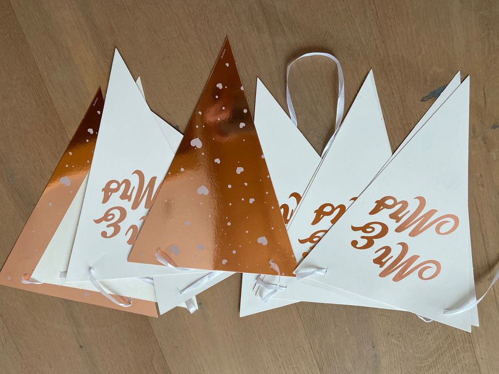 Oh, diese Mr & Mrs Girlande ist einfach traumhaft für eure Hochzeit! Die 13 Meter lange Wimpelkette in klassischem Weiß sieht total elegant aus und passt zu jedem Hochzeitsstil. Jeder Buchstabe ist etwa 13 x 15,5 cm groß - also schön sichtbar, aber nicht zu aufdringlich.\n\nWas ich besonders praktisch finde: Die Girlande besteht aus hochwertigem Papier und ist wiederverwendbar. Nach der Hochzeit könnt ihr sie einfach zusammenrollen und für den nächsten besonderen Anlass aufbewahren. Die Aufhängung ist total unkompliziert - einfach das horizontale Banner aufspannen und schon verbreitet es festliche Stimmung.\n\nPerfekt nicht nur für die Trauung selbst, sondern auch für die Hochzeitsfeier, die Torte oder als Fotohintergrund. Und wisst ihr was? Sie eignet sich auch super für Verlobungsfeiern, Jubiläen oder romantische Überraschungen. Das Herz-Motiv zwischen Mr & Mrs ist einfach niedlich!\n\nOb im Innenbereich oder bei einer Gartenhochzeit - diese Girlande macht überall eine gute Figur. Sie ist langlebig genug für den großen Tag, aber auch günstig genug, um sie vielleicht sogar für verschiedene Dekobereiche zu verwenden. Einfach ein Must-Have für alle, die ihre Hochzeit persönlich und liebevoll gestalten wollen!
