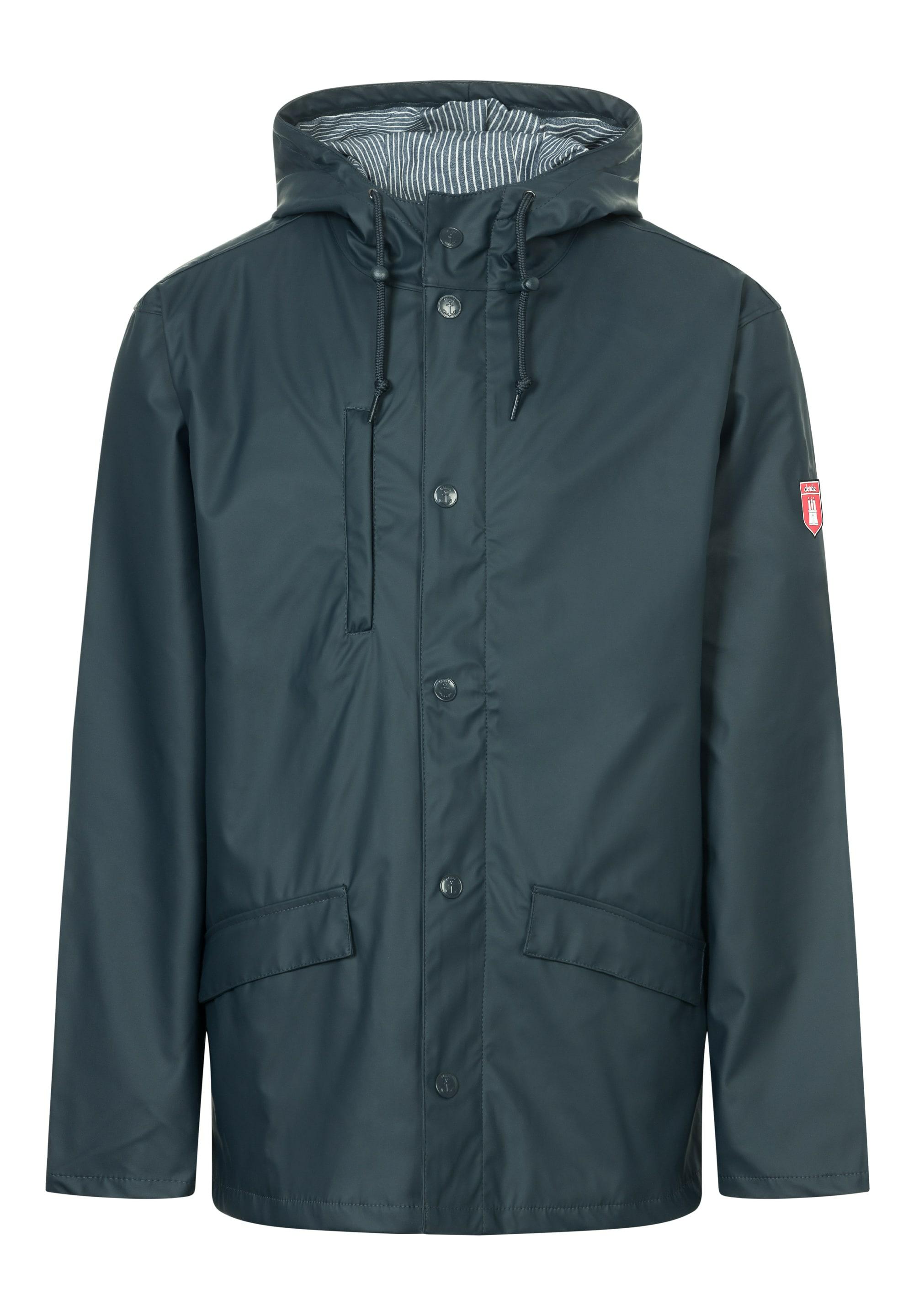 Für alle, die auch bei Regen stylisch unterwegs sein wollen! Diese derbe Herren Regenjacke kombiniert Funktion mit Fashion. Wasserabweisend, winddicht und atmungsaktiv - perfekt für wechselhaftes Wetter. Aus recyceltem Polyester und Bio-Baumwolle, vegan zertifiziert durch PETA. Mit verstellbarer Kapuze mit Krempe, seitlichen Eingriffstaschen und praktischer Brusttasche. Das Denim-Innenfutter und farblich abgesetzte Logo-Aufnäher geben ihr einen zeitlosen, eleganten Look. Ob für den Stadtbummel, Wanderung oder Arbeitsweg - diese Jacke hält dich trocken und sieht dabei klasse aus. Leicht, bequem und nachhaltig - was will man mehr?