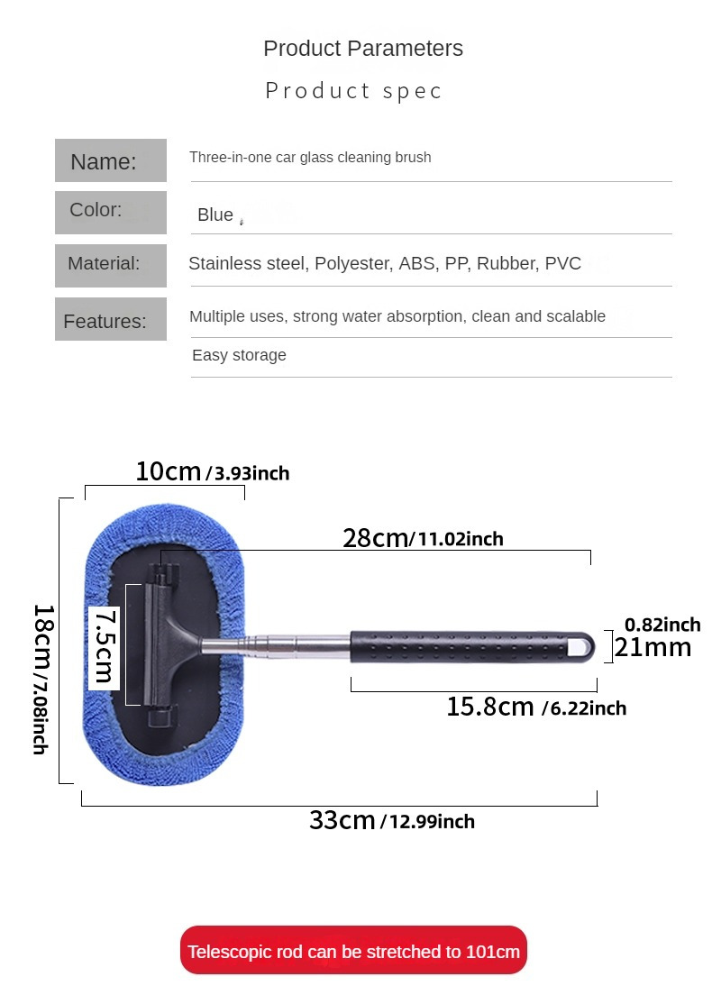 Mann, mit diesem Reinigungsstab machst du deine Autoscheiben blitzeblank! Der teleskopierbare Griff lässt sich von 52cm auf volle 103cm ausziehen - damit erreichst du auch die Mitte der großen Windschutzscheibe mühelos. Die Mikrofaser-Bürste saugt Wasser super auf und hinterlässt keine Streifen. Aus ABS-Kunststoff und Edelstahl gefertigt, ist das Teil richtig stabil und langlebig. Das coole Feature: Du kannst sowohl nass als auch trocken reinigen! Einfach über die Scheibe ziehen und schon sind Wasserflecken und Schmutz Geschichte. Perfekt nicht nur fürs Auto, sondern auch für Hausfenster, Badezimmerspiegel oder andere Glasflächen. Nach Gebrauch einfach zusammenschieben - platzsparend für die Aufbewahrung im Handschuhfach oder der Garage. Die mitgelieferten Schrauben machen die Wandmontage zum Kinderspiel, wenn du es fest installieren willst. Ein echter Zeitsparer für die Auto-Pflege! Nie wieder mit müden Armen die Scheiben putzen - mit diesem Tool geht's easy und schnell. Ein Must-have für jeden Autobesitzer, der Wert auf klare Sicht und saubere Scheiben legt!