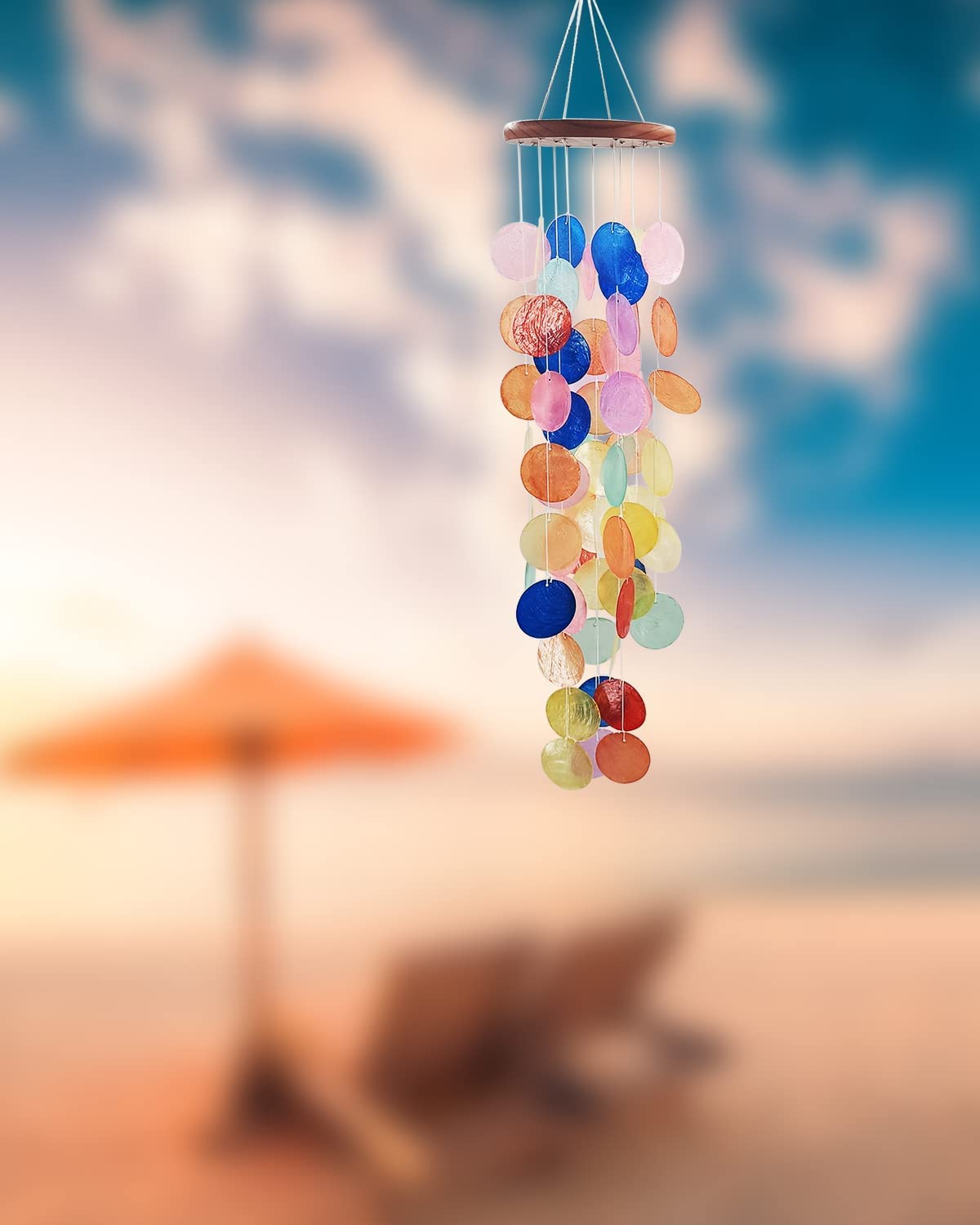Entspannende Klänge für dein Zuhause! Dieses handgefertigte Boho Windspil aus natürlichen Muscheln und Bambus bringt Urlaubsfeeling in deinen Garten. Bei sanftem Wind erzeugen die Muscheln melodische Töne - pure Entspannung für Körper und Geist. Mit 55-73 cm Länge ein echter Blickfänger. Perfekt für Terrasse, Balkon oder als Fensterdekoration. Im DIY-Stil gefertigt - jedes Stück ein Unikat. Die schimmernden Muscheln fangen das Sonnenlicht wunderschön ein. Wetterfest für draußen, aber auch innen ein Hingucker. Das perfekte Geschenk für alle, die Ruhe und Natur lieben!