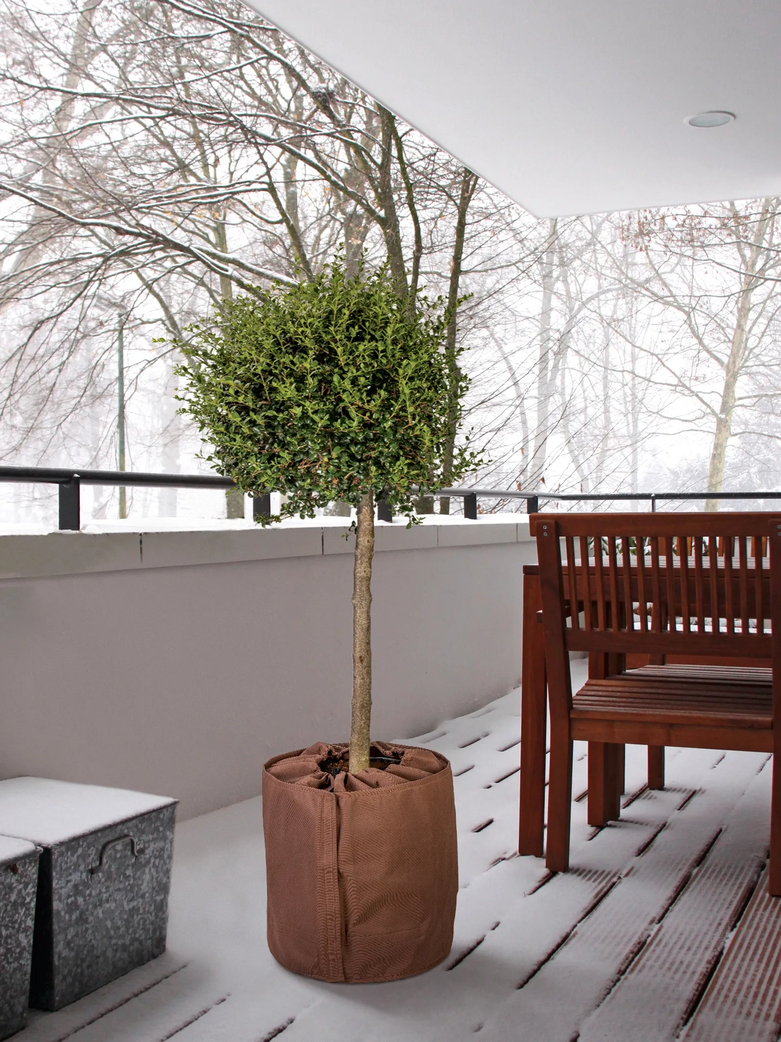 Brrr, wird's kalt? Diese Thermo-Topfschützer retten deine Pflanzen durch den Winter! 2 Stück im Set, je 50x45cm - für die meisten Kübelpflanzen perfekt! Aus Oxford-Stoff mit Aluminiumfolie - isoliert super und ist wasserdicht! Mit Reißverschluss seitlich - kannst du easy öffnen zum Gießen! Kordelzug oben - hält fest und schützt vor Wind! Wiederverwendbar - einfach abspülen und trocknen! Schützt vor Frost, Schnee und kalten Temperaturen! Für Rosen, Palmen, Gemüse - alles was draußen überwintern muss! Einfach über die Pflanze stülpen und Winter adé - deine Pflanzen werden's dir danken!