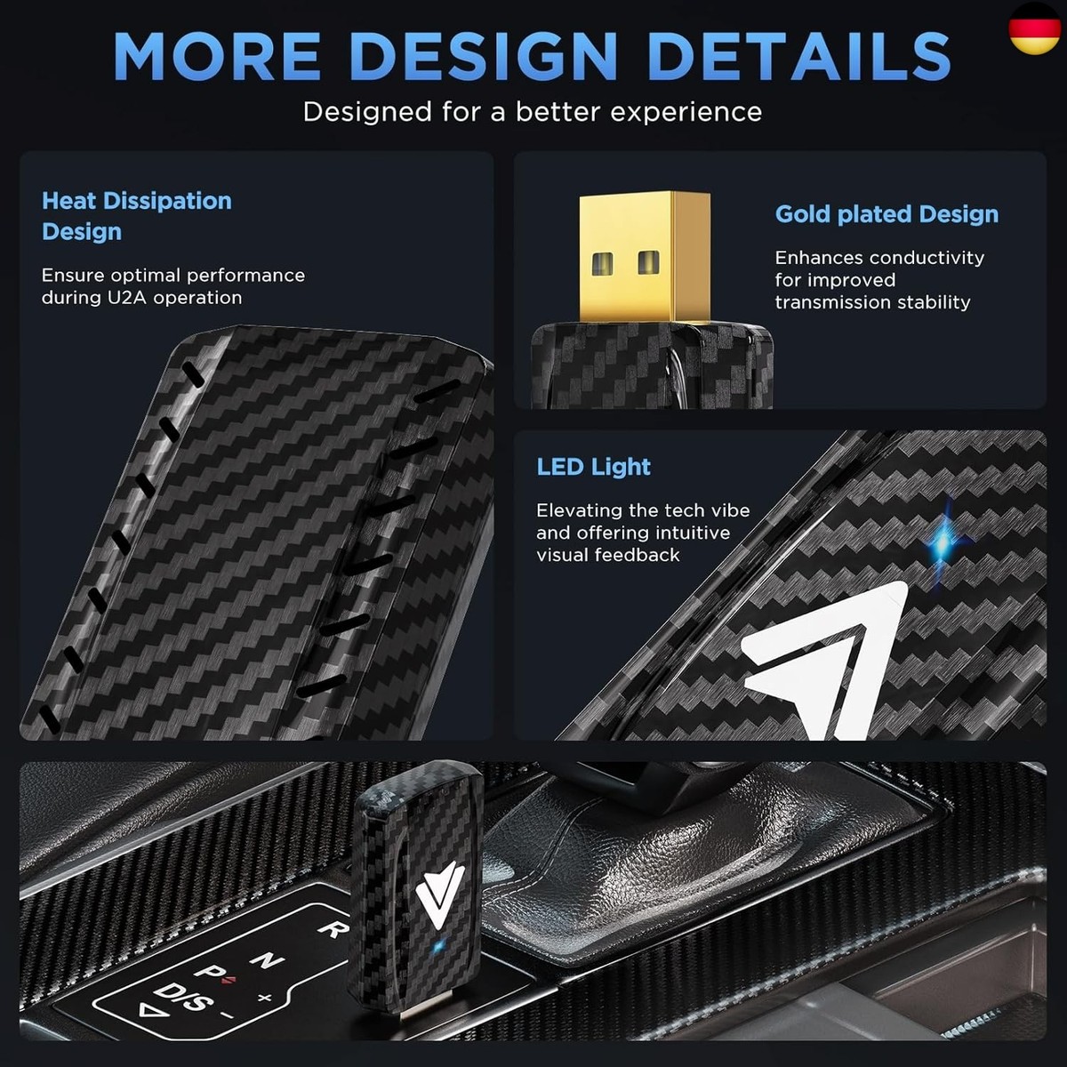 Mega praktisch dieser Android Auto Wireless Adapter! Endlich kein Kabelsalat mehr im Auto. Einfach den U2AC-L9 Stick in den USB-Anschluss stecken, per Bluetooth mit dem Handy koppeln und schon läuft Android Auto kabellos.\\n\\nDas Beste: Du kannst sogar YouTube und andere Video-Apps nutzen - dafür musst du nur die mitgelieferte App installieren. So wird jede Fahrt unterhaltsamer!\\n\\nWichtig: Funktioniert nur mit Android-Smartphones und Autos, die kabelgebundenes Android Auto unterstützen. Für Apple CarPlay oder iOS geht's leider nicht. Die Reichweite beträgt bis zu 15 Meter und sobald du das Auto einschaltest, verbindet sich alles automatisch.\\n\\nIm Lieferumfang: Adapter, USB A auf C Kabel und Bedienungsanleitung. Dazu gibt's 12 Monate Garantie und professionellen Support. Einfach einstecken und den Komfort von kabellosem Android Auto genießen - so macht Autofahren noch mehr Spaß!