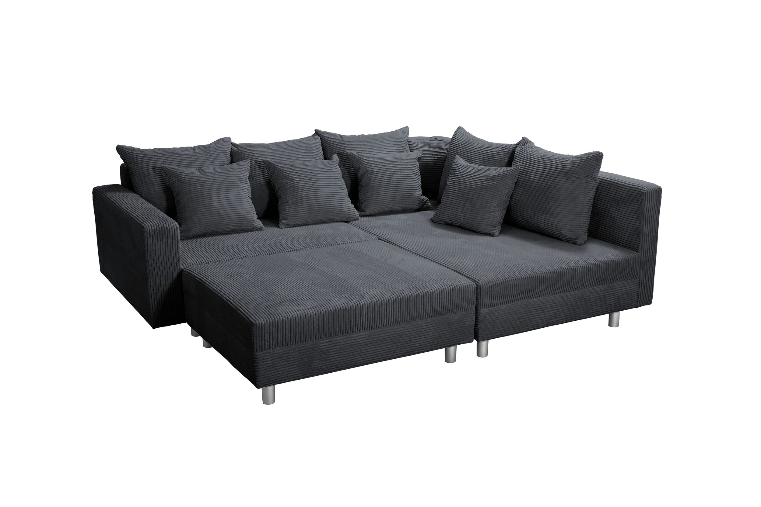 Kuechen-preisbombe Wohnlandschaft Sofa Minsk - Ecksofa Cordstoff Graphite Mit Hocker