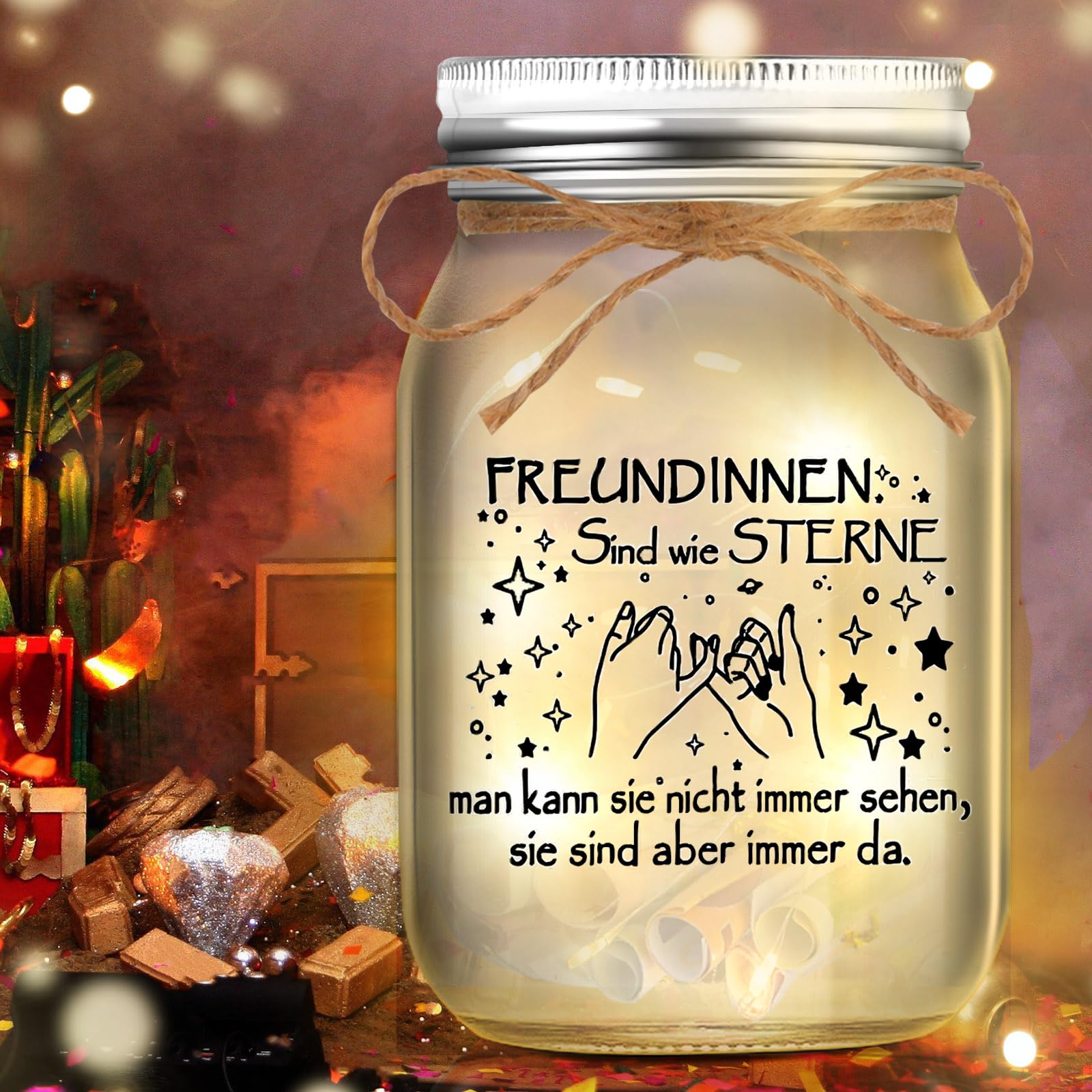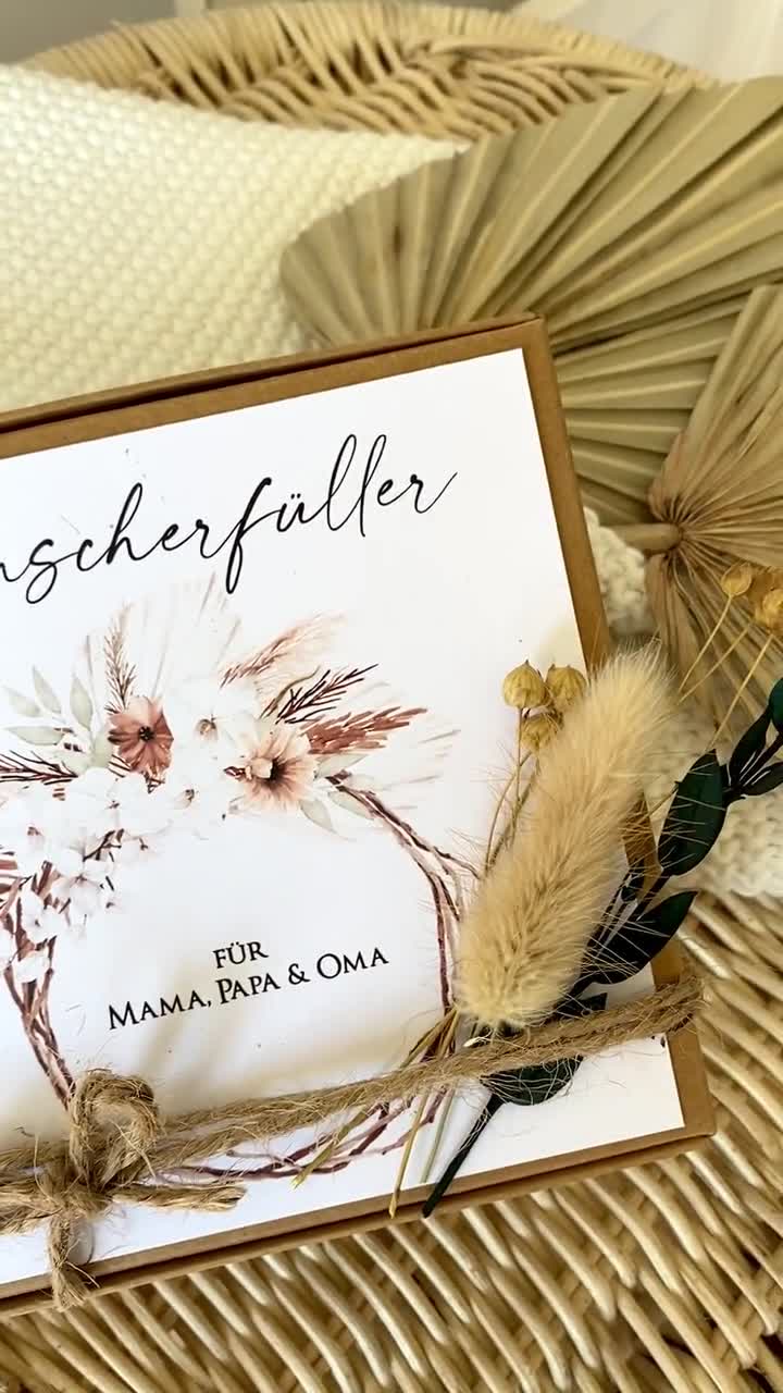 Was für eine geniale Geschenkidee! Diese Glasflasche mit dem Spruch 'KLEINER Wunscherfüller' und LED-Beleuchtung ist perfekt für Geldgeschenke oder persönliche Botschaften. Mit 17,5 cm Höhe bietet sie genug Platz für Geldscheine, Wunschzettel oder kleine Geschenke. Im Lieferumfang sind 20 LED-Lichter, 50 Metallringe, bunte Wunschzettel und eine Juteschnur enthalten - alles für dein DIY-Projekt. Das sanfte Licht schafft eine wunderschöne Atmosphäre. Perfekt für Geburtstage, Weihnachten, Jugendweihe oder einfach so als Überraschung. Damit machst du garantiert jedem eine Freude!