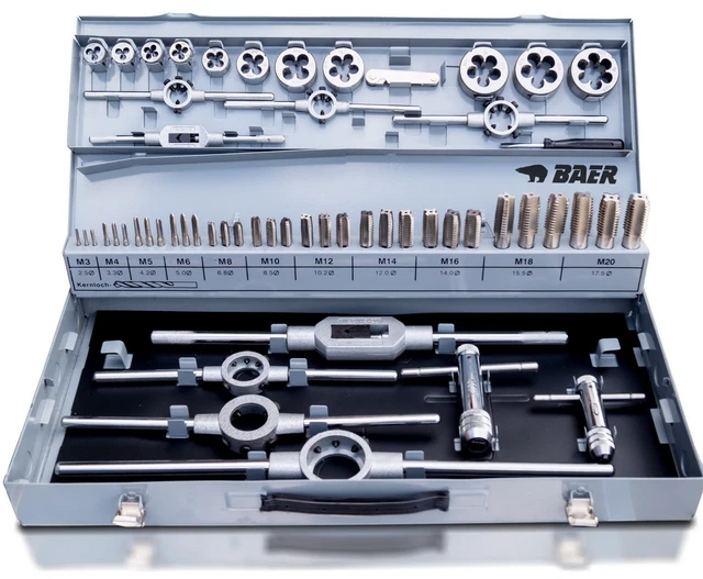 Dieses professionelle Gewindebohrer-Set von Burkit ist genau das Richtige für alle, die präzise Gewinde schneiden müssen! Mit dem M20 x 1,75 Gewindebohrer und passendem Schneideisen hast du alles, was du für saubere Gewinde brauchst.