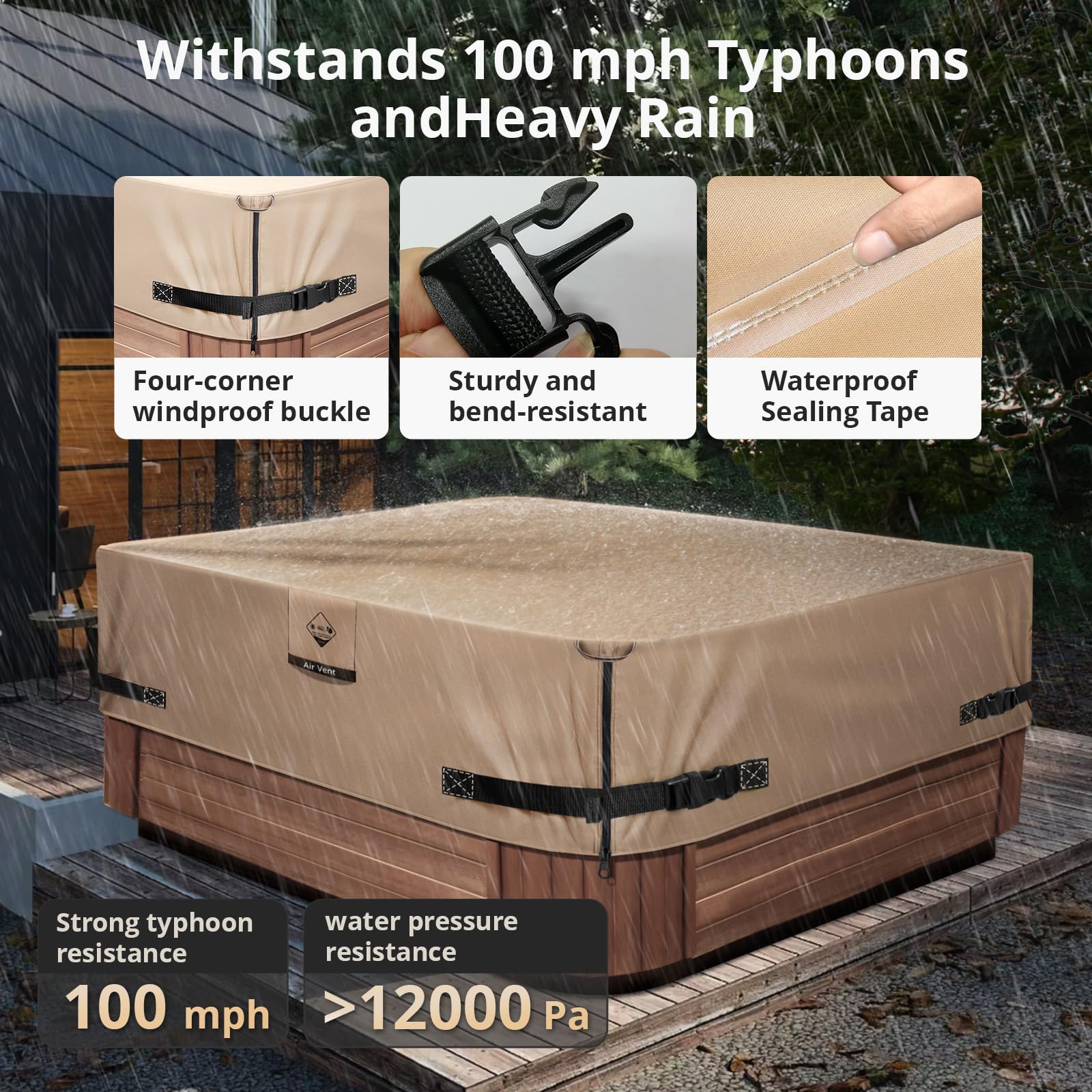 Hey Whirlpool-Besitzer! Diese robuste Abdeckung schützt deinen Spa perfekt vor Witterung und Schmutz. Mit 215,9 x 160 cm passt sie ideal für Whirlpools mit 213,3 x 160 cm oder 213,3 x 152,4 cm - aber mess lieber nochmal nach! Die 1000N Reißfestigkeit hält echt was aus. Komplett wasserdicht mit spezieller Beschichtung und versiegelten Nähten - kein Regen, Staub oder Laub kommt durch. Die verstellbaren, verdickten Schnallen und winddichten Befestigungsgurte sorgen dafür, dass die Abdeckung auch bei Sturm sicher sitzt. Mit praktischem Tragegriff und Reißverschluss super einfach zu handhaben. Die verbesserte PU-Beschichtung ist sonnen- und frostbeständig und hinterlässt keine schwarzen Spuren auf deinem Whirlpool. Belüftungsöffnungen lassen innere Feuchtigkeit entweichen. Achtung: Diese Abdeckung isoliert nicht - du brauchst weiterhin eine feste Isolierabdeckung für den Winter. Wenn du also eine langlebige, praktische Abdeckung für deinen Whirlpool suchst, die wirklich dicht hält, ist dieses Modell genau das Richtige! Einfach drüberziehen, festzurren und dein Spa bleibt sauber und geschützt.