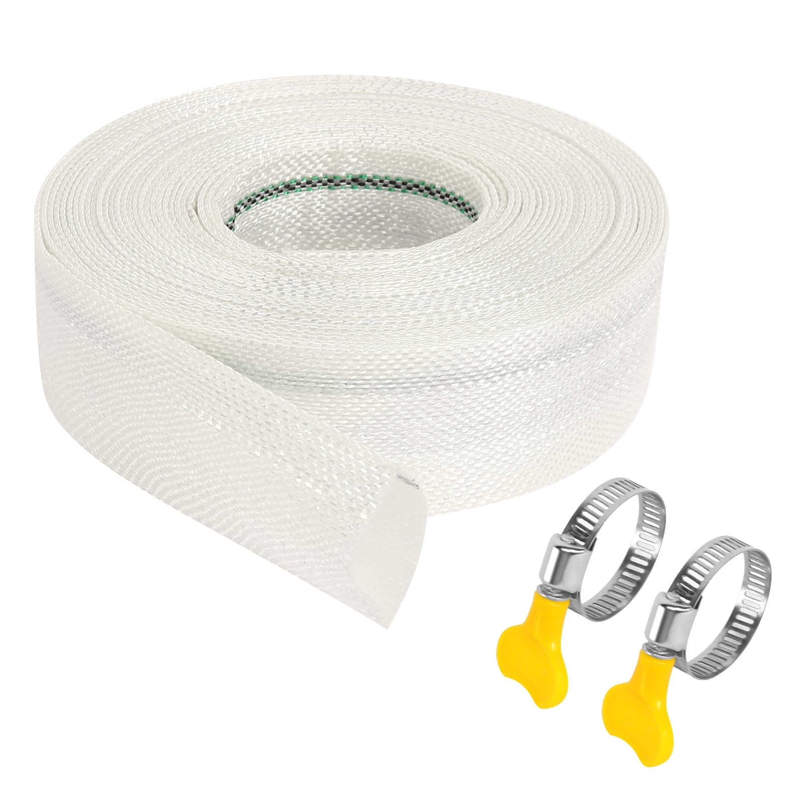 Dieser Gewebeschlauch ist der Alleskönner für deinen Garten und mehr! Mit 10m Länge und 32mm Durchmesser bewältigst du jede Bewässerungsaufgabe. Der flach zusammenrollbare Schlauch spart jede Menge Platz in deinem Schuppen.\n\nDie mitgelieferte Edelstahlklemme sorgt für eine absolut dichte Verbindung zu deiner Pumpe. Kein lästiges Tropfen mehr!\n\n• Länge: 10 Meter, Durchmesser: 32mm (1 1/4 Zoll)\n• Flach zusammenrollbar - platzsparend verstaut\n• Inklusive rostfreier Edelstahlklemme\n• UV-beständig und langlebig\n• Vielseitig einsetzbar: Garten, Pool, Baustelle, Notfälle\n\nEgal ob du deinen Garten bewässern, den Pool ablassen oder bei Regen Wasser umleiten willst - dieser Schlauch ist dein zuverlässiger Partner. Einfach anschließen und das Wasser fließt!