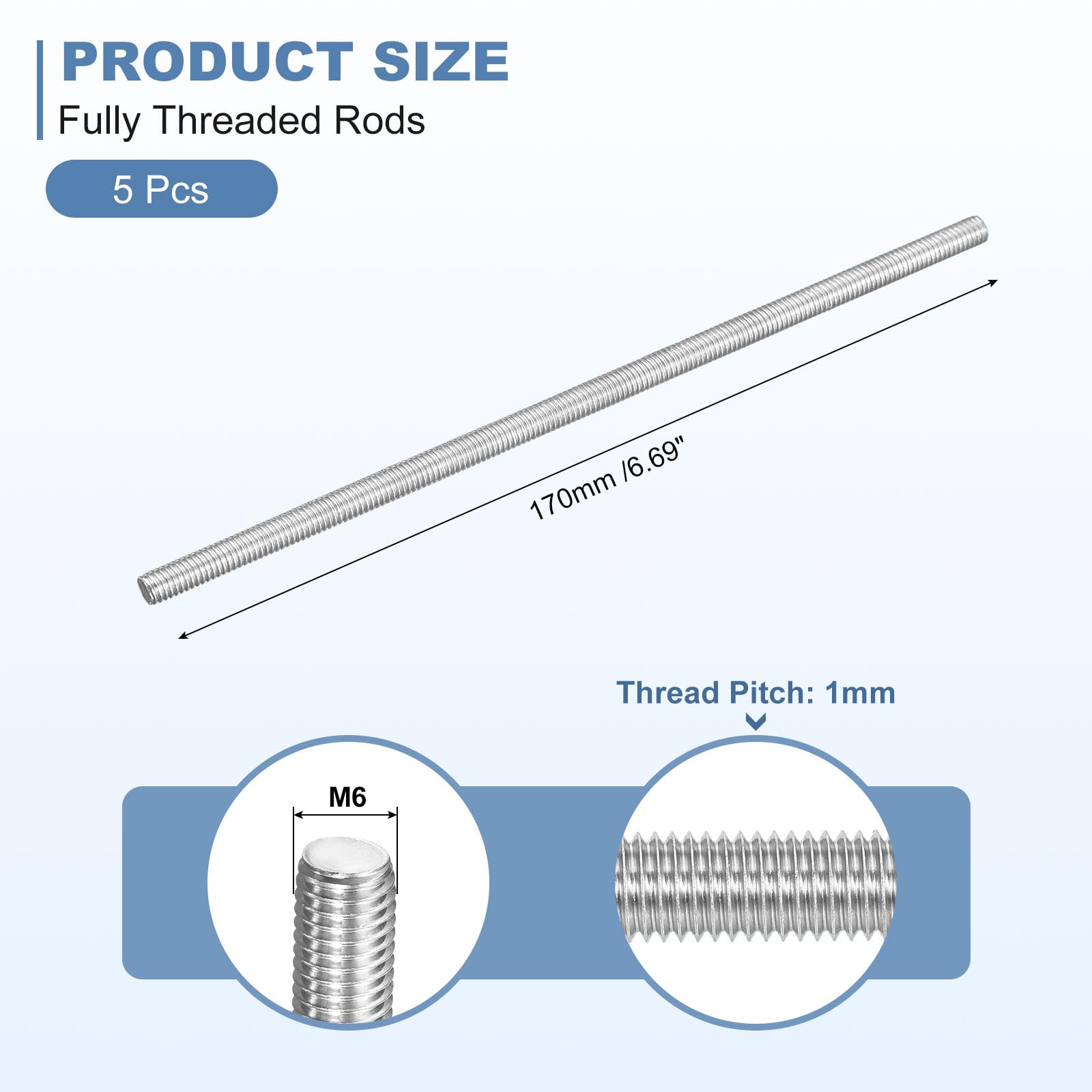 Im Lieferumfang ist alles dabei, was du brauchst: Die Gewindestange, 2 Muttern und 2 quadratische Unterlegscheiben. Kein extra Einkaufen nötig! Die Gewindesteigung beträgt 1mm - passt zu den meisten Standardmuttern.