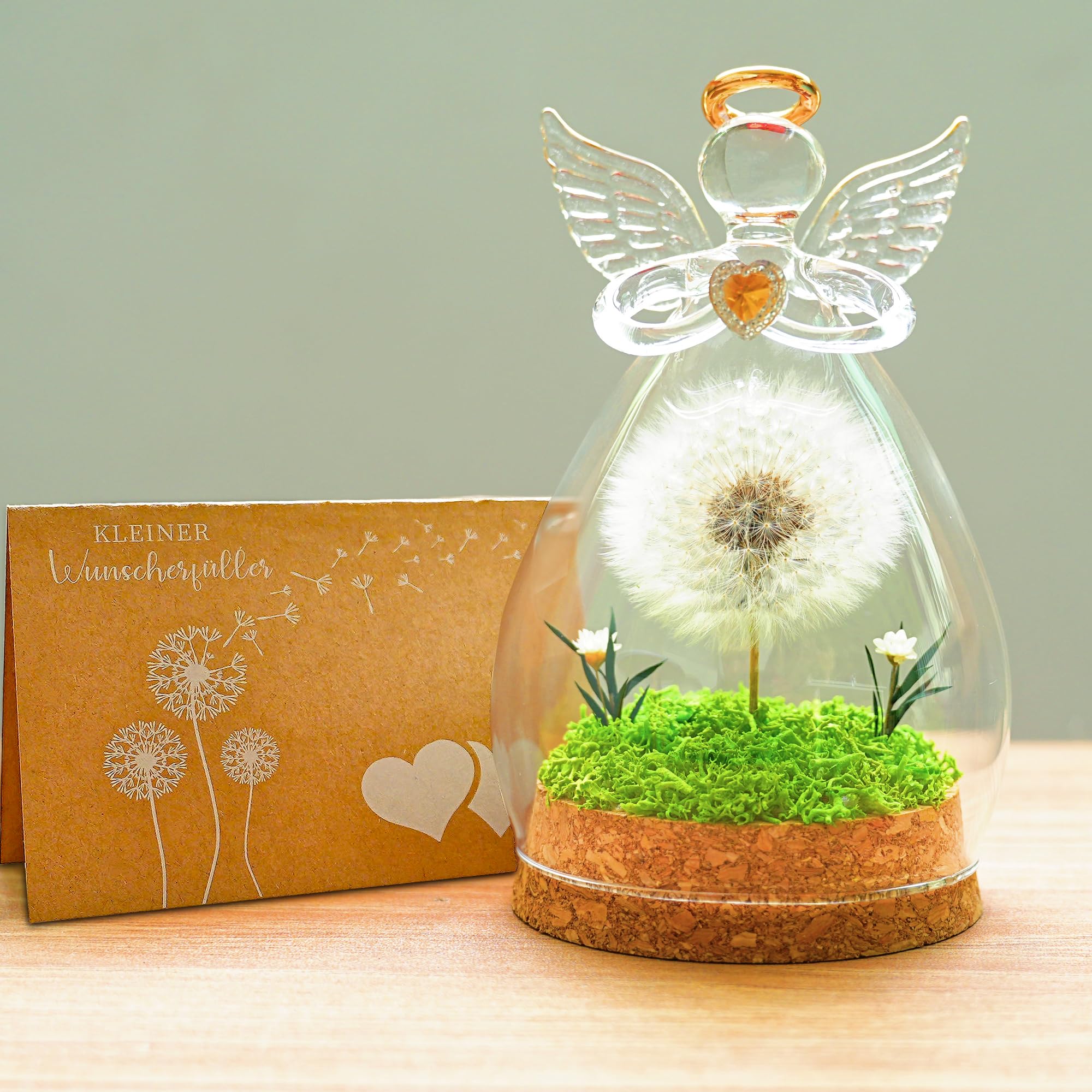 Magie in einem Glas! Diese bezaubernde Pusteblume wurde sorgfältig getrocknet und in einer 6,5 x 4,7 cm großen Glasflasche konserviert. Schüttelst du das Glas, tanzen die Samen wie im Wind - der perfekte Moment, um sich etwas zu wünschen. Dieses besondere Geschenk symbolisiert Hoffnung, Neuanfang und unendliche Möglichkeiten. Im Lieferumfang enthalten sind eine Wunschkarte zum persönlichen Beschriften, Bast zur Dekoration und eine hübsche Geschenkbox. Ob zum Geburtstag, Jubiläum oder als liebevolle Überraschung - die Pusteblume im Glas ist ein zeitloses Andenken, das Herzen höher schlagen lässt.