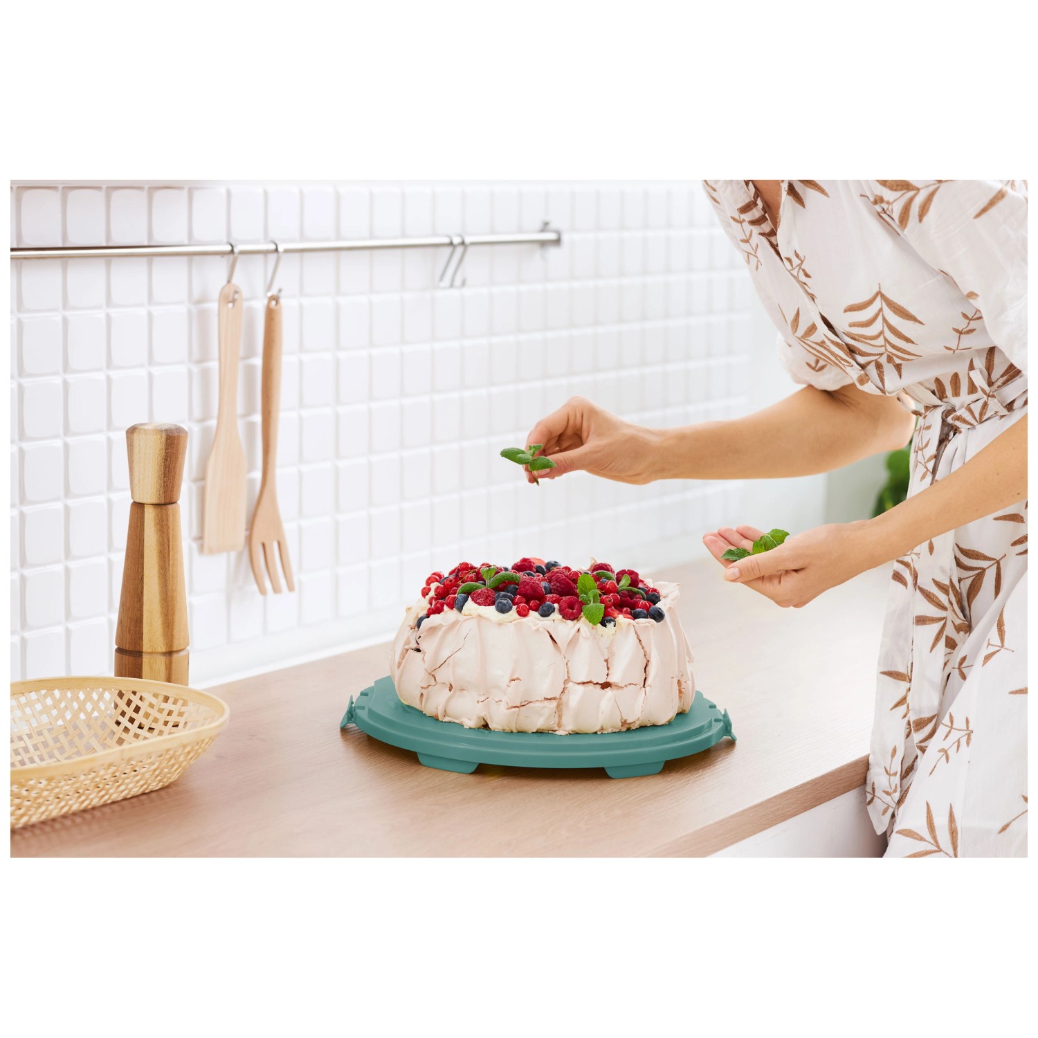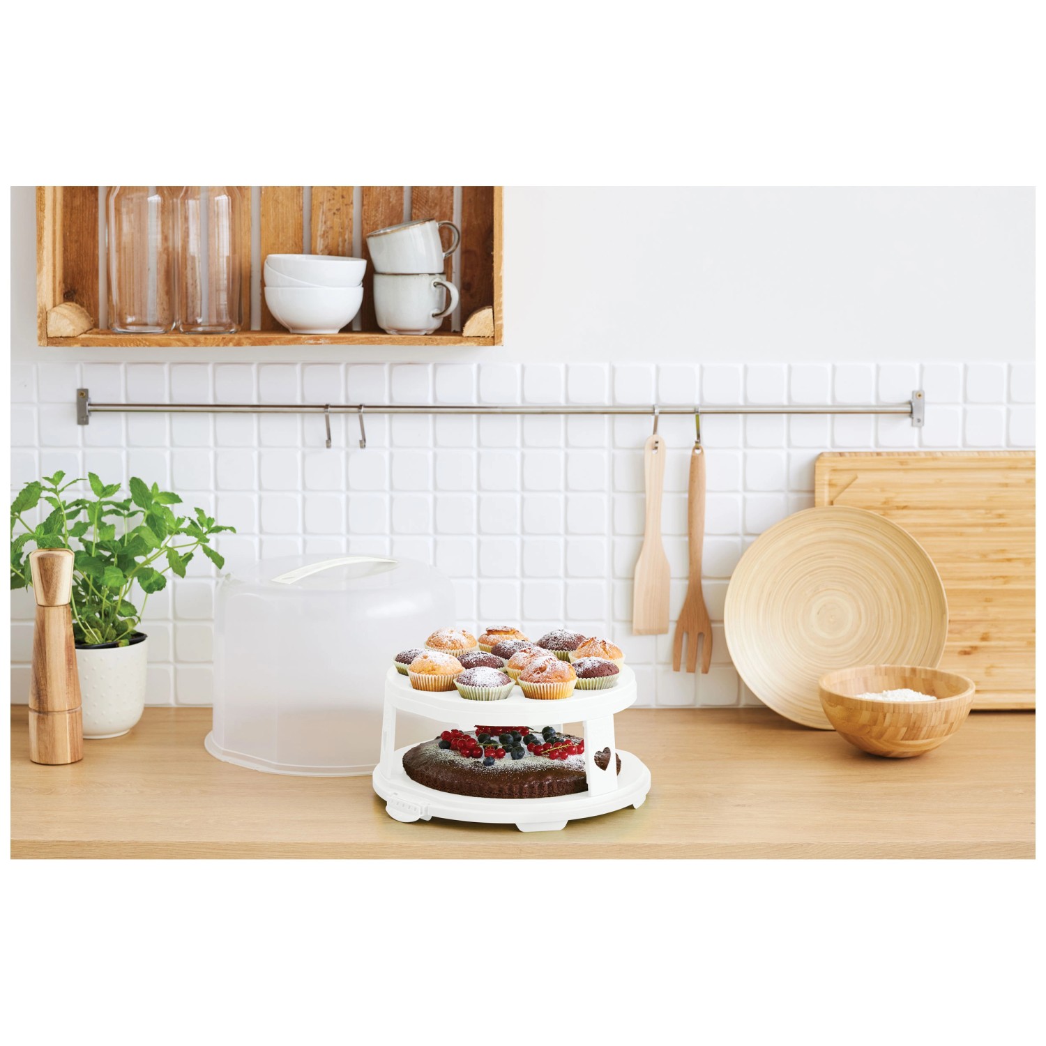 Deine Torten bleiben frisch und geschützt! Diese Rotho Tortenglocke ist perfekt für alle Back-Fans. 26 cm Durchmesser - passt für die meisten Torten und Kuchen. In hübschem Meadow Rose Design - sieht auf dem Esstisch super aus. Mit 2 praktischen Einsätzen - ideal für verschiedene Höhen. Aus stabilem Kunststoff - leicht zu reinigen. Schützt vor Staub und Insekten - deine Kreationen bleiben perfekt. Auch toll für Cupcakes, Muffins oder andere Leckereien. Deckel lässt sich leicht abnehmen - kein Gefummel. Macht sich super in jeder Küche! Einfach über die Torte stülpen und frisch halten. Praktisch und dekorativ zugleich!