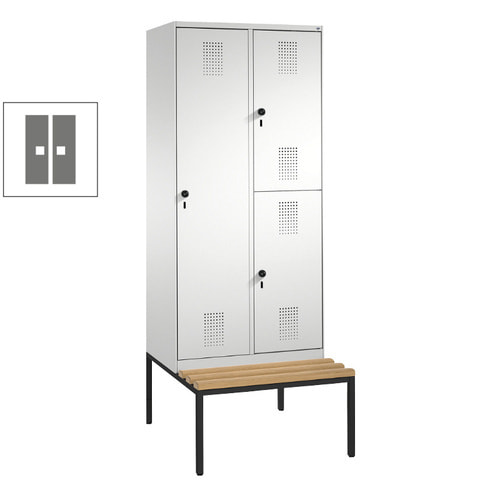 Dieser Lüllmann Spind kommt fix und fertig montiert - kein lästiges Zusammenbauen mehr! Mit den Maßen 180x40x50 cm bietet er richtig viel Stauraum für deine Kleidung. In RAL 7035 lichtgrau/enzianblau sieht er super modern aus und passt in jeden Raum. Aus robuster, verschweißter Stahlkonstruktion - das hält ewig! Mit 2 Fächern übereinander, je mit Garderobenstange und 3 verschiebbaren Kleiderhaken. Die Türen haben gefederte Scharniere und geräuschdämpfende Puffer - kein lautes Zuknallen! Abschließbar mit Vorhangschloss (nicht im Lieferumfang) - ideal für Umkleiden oder Gemeinschaftsräume. Perfekt für Fitnessstudios, Schulen, Betriebe oder auch zu Hause. Einfach hinstellen, Schloss dran und fertig! Die Lieferung erfolgt frei Bordsteinkante - super Service. Endlich Ordnung in deiner Kleidung - und das ohne Montagestress!