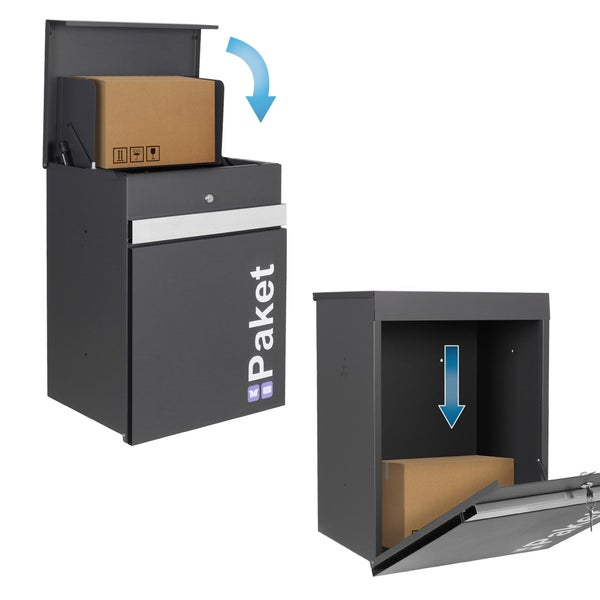 Nie wieder verpasste Pakete! Diese JANANO Paketbox in Anthrazit ist deine Lösung für sichere Paketannahme. Mit cleverem 3-Fach-System für Pakete, Briefe und Zeitungen - alles getrennt und geschützt. Die großen Fächer nehmen auch sperrige Sendungen problemlos auf. Abschließbar mit einem Schlüssel für alle Fächer, plus BoxGuard-Klappmechanismus gegen Diebstahl. Aus robustem, wetterbeständigem Material mit RAL 7016 Beschichtung - hält jedem Wetter stand und rostet nicht. Einfache Montage mit beiliegender Anleitung. Modernes Design, das deinem Hauseingang sofort ein Upgrade verpasst. Endlich keine gequetschten Zeitungen mehr, keine nassen Pakete und kein Stress mehr mit verpassten Lieferungen. Werde zum Trendsetter in deiner Nachbarschaft!