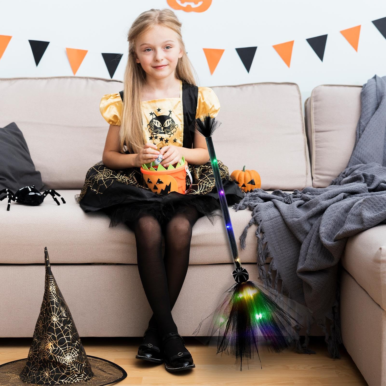 Ab auf den Besen und ab in die Hexennacht! Dieser LED-Hexenbesen von Xijobido bringt richtig magische Stimmung in deine Halloween-Party. Mit satten 65 cm Länge ist er perfekt für große und kleine Hexen. Das coole Feature: Mehrfarbige LED-Lichter, die in der Dunkelheit richtig was hermachen! Ob im Garten, auf der Terrasse oder vor der Haustür - dieser Besen sorgt überall für gruselig-schöne Atmosphäre. Der ergonomische Griff liegt super in der Hand, auch für Kinder. Hergestellt aus Netzstoff, ABS und elektronischen Komponenten, ist er leicht (nur 45g) aber trotzdem stabil. Perfekt für Rollenspiele, Kostümpartys oder einfach als Deko. Braucht 3 Batterien (nicht im Lieferumfang) und macht dann jede Party zum magischen Erlebnis! Einfach aufsteigen und losfliegen - oder zumindest so tun als ob!