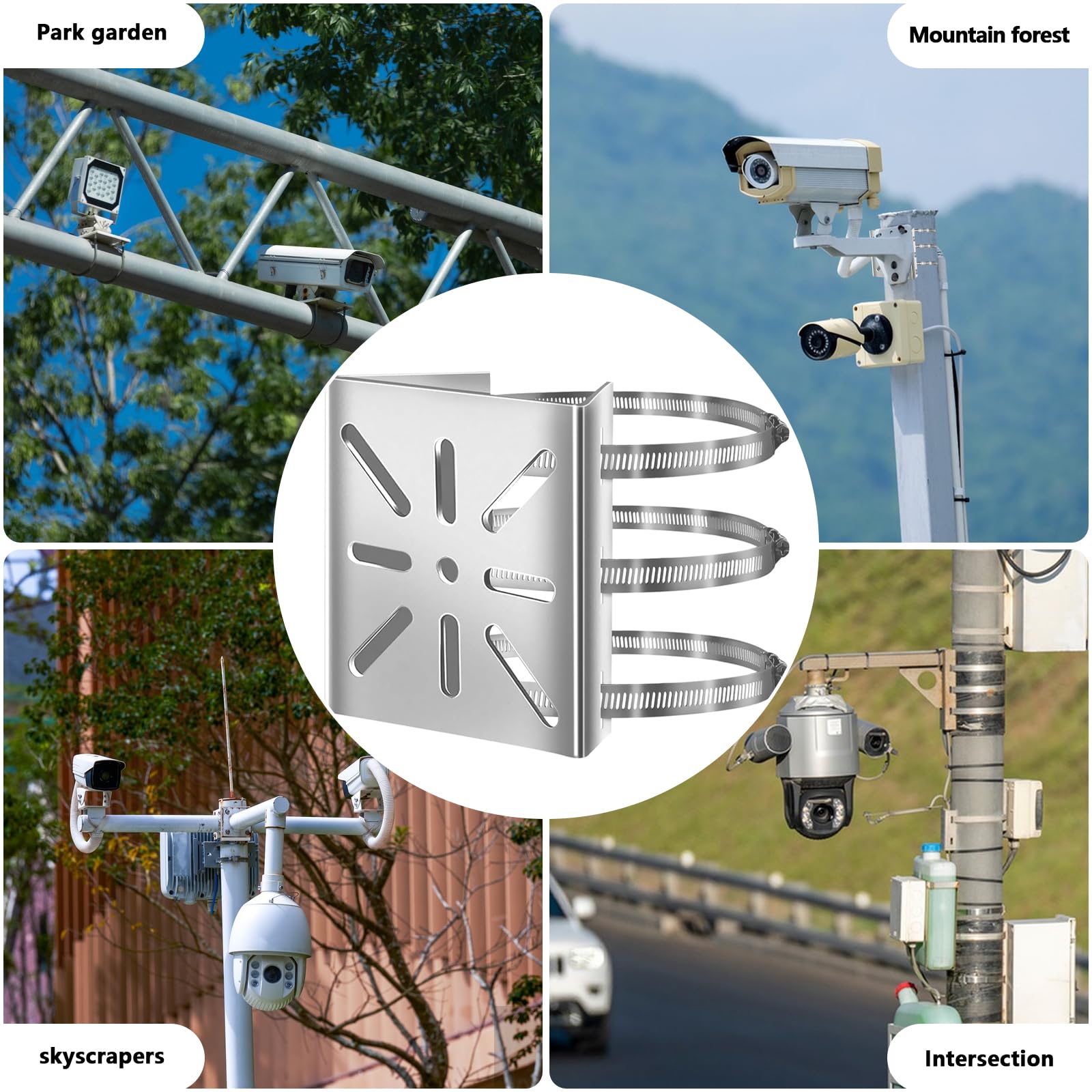 Perfekt für alle, die Kameras oder Solarpanels an Masten befestigen wollen! Diese robuste Masthalterung aus Edelstahl rostet nicht und hält ewig. Mit 3 verstellbaren Ringen passt sie an Masten mit Durchmessern von 194-216 mm - einfach anpassen und festziehen! Das komplette Set enthält alles was du brauchst: 1 Montageplatte, 3 verstellbare Ringe, 4 M5-Schrauben, 4 Muttern und 4 Unterlegscheiben. Kein lästiges Bohren nötig - einfach den Ring in die Grundplatte setzen und mit Schraubendreher festziehen. Super stabil und sicher! Ideal für Überwachungskameras, LED-Wandleuchten, Sonnenkollektoren oder Satellitenantennen. Ob an Wänden, Decken oder Säulen - diese Halterung macht überall eine gute Figur. Maße: 108 × 105 mm, Ringbandbreite 12 mm. Einfach zu installieren, spart Zeit und Aufwand. Aus hochwertigem, korrosionsbeständigem Edelstahl - verformt sich nicht und sieht auch nach Jahren noch gut aus. Deine Kamera bleibt sicher am Mast - egal bei welchem Wetter!