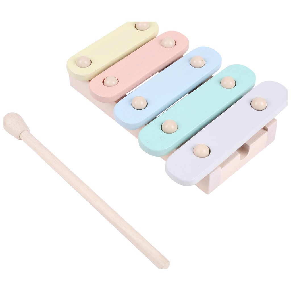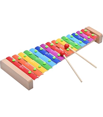 Dieses süße goki Xylophon bringt musikalischen Spaß in jedes Kinderzimmer! Mit 8 farbigen Metallplatten, die exakt gestimmt sind, können Kinder erste Melodien entdecken. Der elegant geschwungene Holzstandfuß sieht nicht nur toll aus, sondern sorgt auch für stabilen Halt. Im Lieferumfang sind zwei passende Schlägel enthalten - so kann sofort losgeklimpert werden. Mit 28 cm Länge perfekt für kleine Kinderhände. Die bunten Farben helfen bei der Orientierung und machen das Musizieren besonders anschaulich. Robuste Verarbeitung aus Holz und Metall - hält auch wilderen Musikeinlagen stand. Perfekt für Kinder ab 3 Jahren zur Förderung von Kreativität, Rhythmusgefühl und musikalischem Gehör. Ein wunderbares Geschenk für kleine Nachwuchsmusiker!