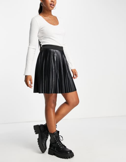 • GORGLITTER Damen PU Leder Minirock - Y2K Plissiert Mit Nietengürtel, Niedrige Taille