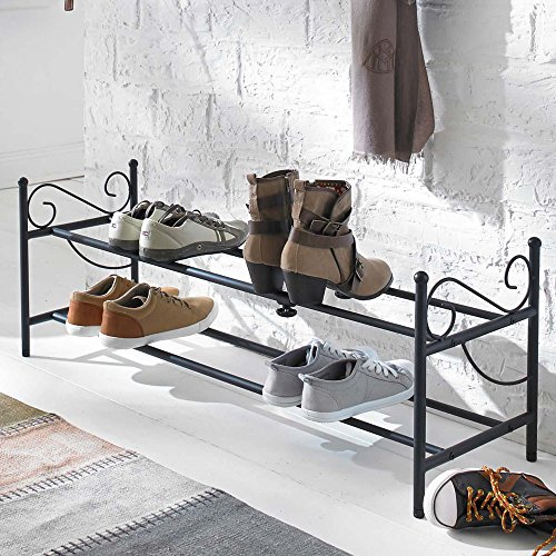 • YHNDECO Schuhregal 2 Ebenen Metall - Stapelbarer Schuhorganizer Für Flur