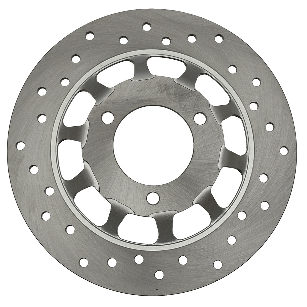 Sicherheit geht vor! Diese gelochte Vorderbremsscheibe für deine Yamaha SR 125 (1997-2002) gibt dir wieder volle Kontrolle auf der Straße. Aus hochwertigem Stahl gefertigt, mit vielen Löchern für optimale Wärmeableitung und bessere Bremsleistung. Einfach zu montieren, keine komplizierten Arbeiten nötig. Verbessert spürbar die Fahrsicherheit und gibt dir das gute Gefühl, immer sicher anzukommen. Ein wichtiges Upgrade für deine Yamaha - fahr sicher!