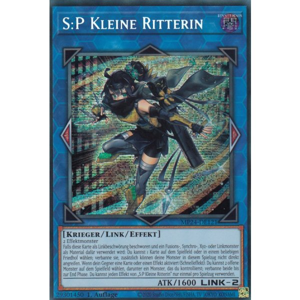 Yugioh-Sammler, aufgepasst! Die S:P Kleine Ritterin als Starlight Rare ist ein absolutes Juwel für jede Sammlung. Aus dem 2025 Mega-Pack Tin in deutscher 1. Auflage - da schlägt jedes Sammlerherz höher! Der Kartentext zeigt ein starkes Effekt Linkmonster: Sie benötigt 2 Effektmonster und wenn sie mit Fusions-, Synchro-, Xyz- oder Linkmonstern als Material beschworen wird, kannst du 1 Karte verbannen. Ihr Schnelleffekt erlaubt dir, 2 offene Monster zu verbannen. Jeder Effekt nur einmal pro Spielzug. Das RC-Fieldcenter hilft dir bei Turnieren, den Überblick zu behalten. Der Zustand ist Near Mint oder besser - also top! Als offizielles Konami-Produkt bekommst du hier Qualität. Perfekt für Spieler und Sammler, die was Besonderes suchen. Die Karte wird sicher verpackt und nachhaltig verschickt. Ein Must-Have für jedes ernsthafte Yugioh-Deck!