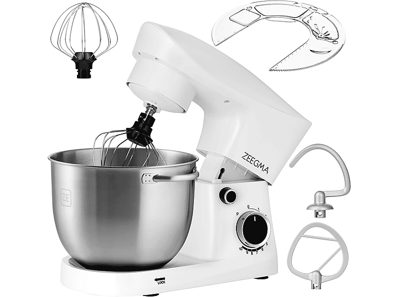 Dein neuer Küchenchef ist da! Die ZEEGMA PLANEET MULTI vereint drei Geräte in einem: eine kraftvolle Planeten-Küchenmaschine, einen elektrischen Fleischwolf und einen Hochleistungsmixer. Mit 1900 Watt Power meistert sie jeden Teig - ob zähen Pizzateig oder luftige Biskuitmasse. Die große 6,2L Edelstahlschüssel mit Griff und Deckel bietet Platz für große Portionen. Die Planetenbewegung sorgt dafür, dass jeder Teigrand perfekt mitgeknetet wird. Im Lieferumfang: Knethaken für schwere Teige, Rührer für leichte Massen und Schneebesen für Schlagsahne - alles spülmaschinenfest! Der integrierte Fleischwolf mit drei Scheiben macht frisches Hackfleisch in der gewünschten Konsistenz und sogar hausgemachte Würstchen. Der 1,5L Standmixer zerkleinert Obst, Gemüse und Eiswürfel im Nu für cremige Smoothies und Suppen. 6 Geschwindigkeiten plus Pulsfunktion geben dir die volle Kontrolle. Überhitzungsschutz und rutschfeste Füße sorgen für Sicherheit. Ob für Profi-Köche oder Hobby-Bäcker - diese Maschine macht jede Küchenarbeit zum Kinderspiel!