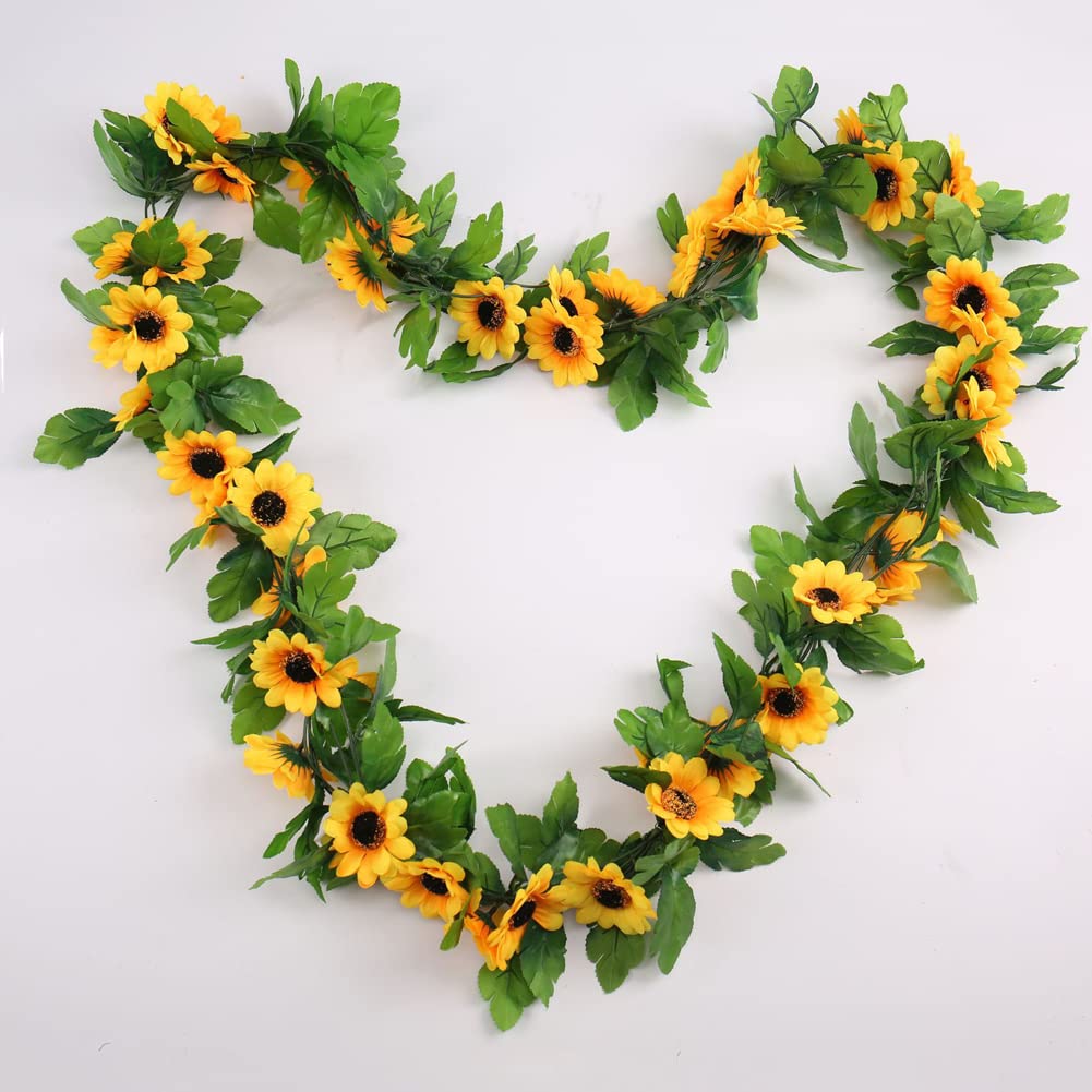 Diese Sonnenblumen-Girlanden bringen Sommerstimmung ins Haus - und das das ganze Jahr über! Im Set sind 3 Girlanden, jede 236 cm lang mit 12 blühenden Sonnenblumenköpfen. Aus Kunststoff und Seidenblumen gefertigt, sehen sie täuschend echt aus! Perfekt zum Dekorieren von Wänden, Geländern, Zäunen oder Tischen. Die leuchtend gelben Blüten mit grünen Blättern sorgen für sofortige gute Laune. Kein Gießen, kein Verwelken - einfach aufhängen und freuen! Ob für Hochzeiten, Geburtstage, Gartenpartys oder einfach zur Verschönerung der Wohnung - diese Girlanden machen überall was her. Du kannst sie beliebig biegen und arrangieren, ganz wie du willst. Auch toll für Fotohintergründe oder zum Basteln von Kränzen. Die Qualität ist top - die Girlanden halten ewig und behalten ihre frische Ausstrahlung. Wenn du dein Zuhause aufhellen willst, sind diese Sonnenblumen genau das Richtige! Einfach bestellen und sich über die sommerliche Deko freuen.