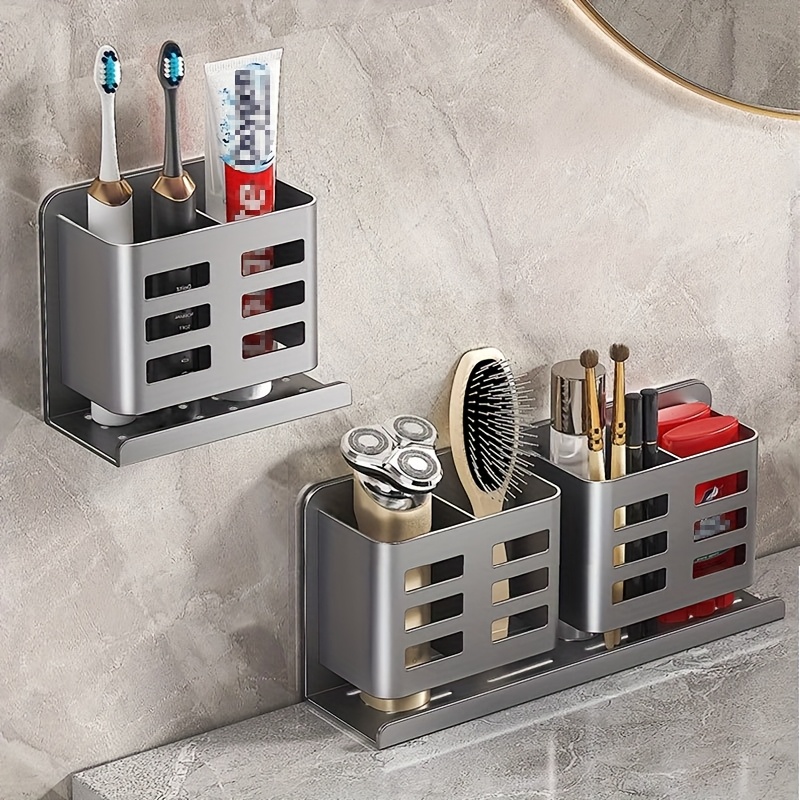 Super praktisch: Einfach die Klebestreifen anbringen - kein Bohren nötig! Die Halter sind 11x9,1x5,8cm groß und bieten Platz für Zahnbürsten, Zahnpasta und andere Kleinigkeiten.