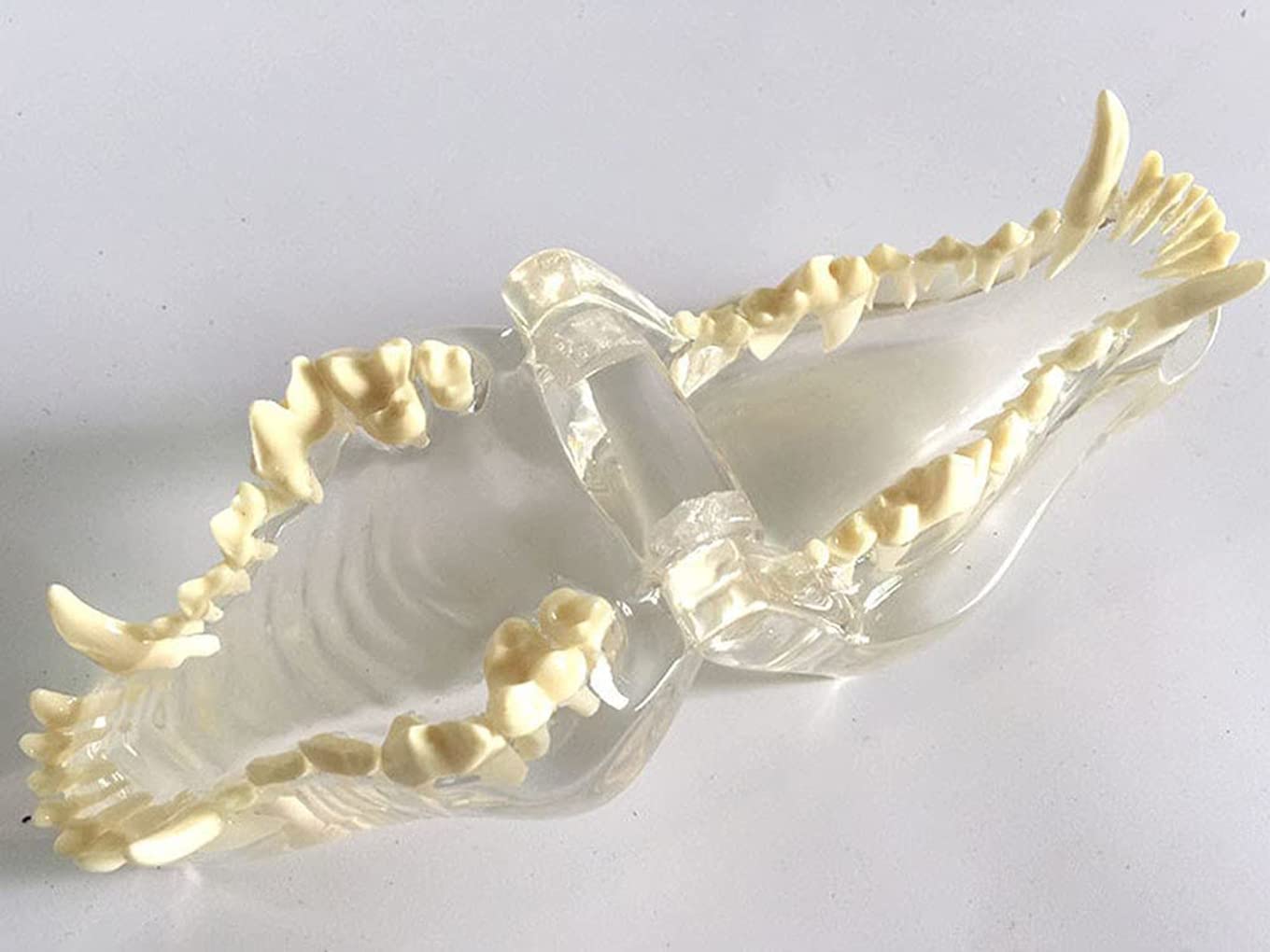 Bist du Tierarzt, Tiermedizin-Student oder einfach nur interessiert an Hundeanatomie? Dieses transparente Hundegebiss-Modell ist faszinierend und lehrreich zugleich! Du siehst alle Zähne perfekt detailliert - Schneidezähne, Eckzähne, Prämolaren und Backenzähne inklusive der Wurzeln. Das Besondere: Der Kiefer lässt sich öffnen, schließen und sogar trennen, was ihn ideal für Demonstrationszwecke macht. Hergestellt aus ungiftigem, umweltfreundlichem Kunststoff ist er leicht und robust. Perfekt für den Unterricht in Tierarztschulen, für die Aufklärung von Tierbesitzern oder einfach als interessantes Anschauungsobjekt in der Praxis. Transparent designet, sodass du wirklich jede Struktur erkennen kannst. Ein unverzichtbares Tool für alle, die mehr über Hundeanatomie lernen oder lehren wollen. Einfach hinstellen und staunen, wie komplex und interessant das Gebiss unserer vierbeinigen Freunde ist!