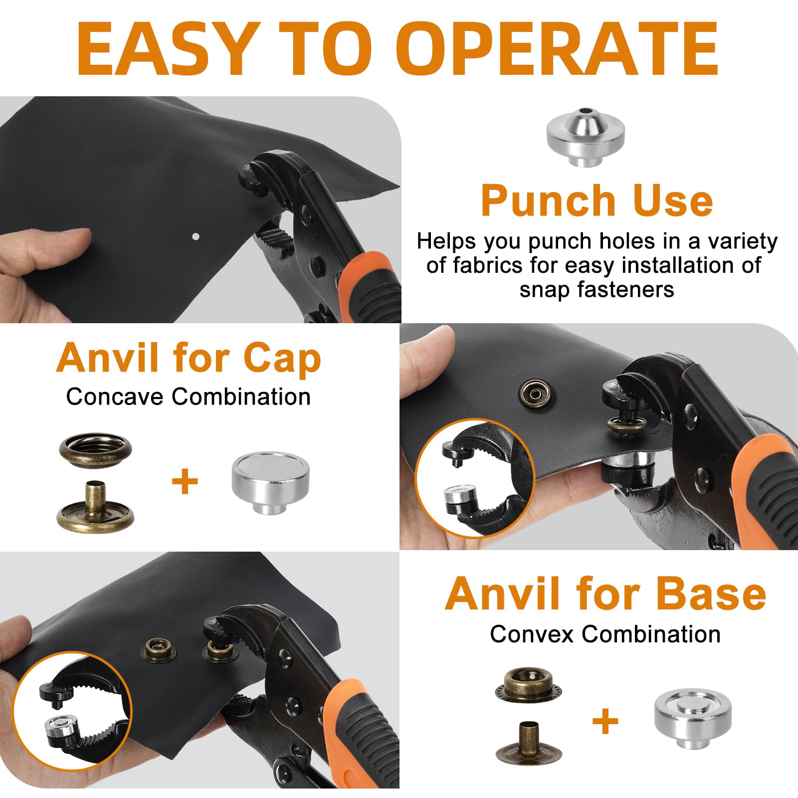 Perfekt für alle DIY-Projekte! Dieses komplette Druckknopf-Set enthält alles, was du brauchst: Eine verstellbare Druckknopfzange, verschiedene Ambosse und Stanzformen, plus 40 komplette Knopf-Sets in 15mm Größe. Die Zange lässt sich durch eine Endschraube genau einstellen und hat eine bessere Hebelwirkung als normale Stanzwerkzeuge - so bekommst du die Knöpfe sicher fixiert, ohne den Stoff zu beschädigen. Aus hochwertigem legiertem Stahl gefertigt, ist die Zange rostfrei, verschleißfest und hält lange. Die magnetischen Matrizen sorgen für präzise Positionierung und verhindern lästiges Verrutschen. Egal ob du an Bootsabdeckungen, Planen, Zelten, Jacken oder Lederprojekten arbeitest - dieses Set macht die Arbeit supereinfach. Auch für Jeans, Daunenjacken oder Autoplanen ideal. Mit den 40 kompletten Knopf-Sets hast du genug Material für mehrere Projekte. Ein professionelles Werkzeug für Heimwerker und Hobby-Schneider!