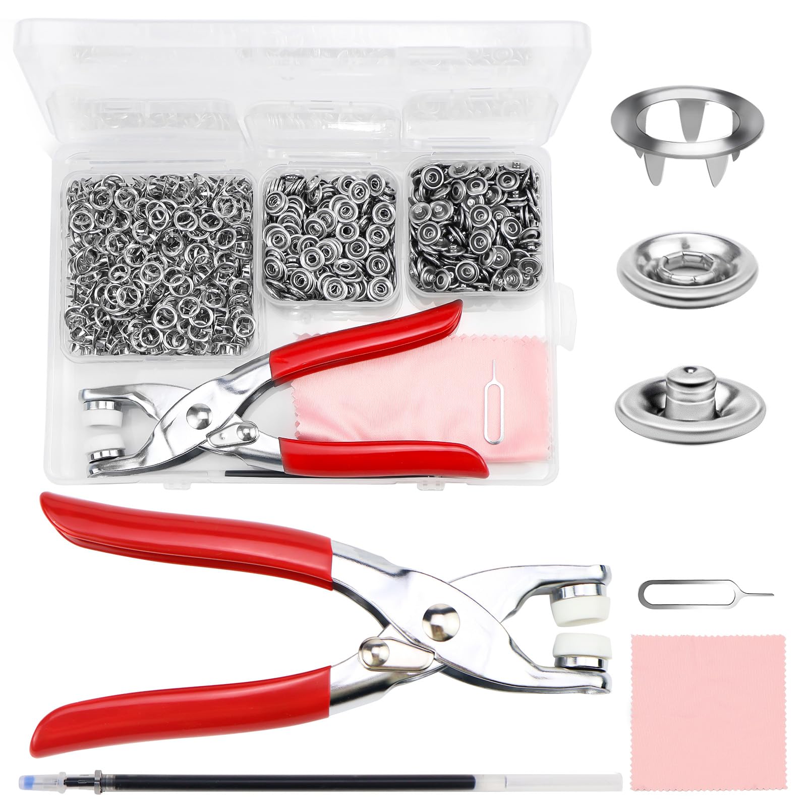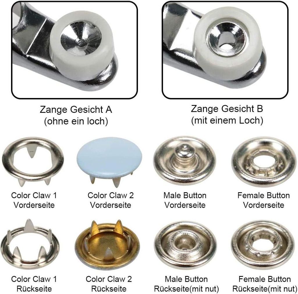 Einfach Kleidung in die Zange legen, drücken - und schon sitzt der Knopf bombenfest! Perfekt für Babykleidung, Jeans, Taschen oder Vorhänge. Aus rostfreiem Stahl, also rostfrei und langlebig.