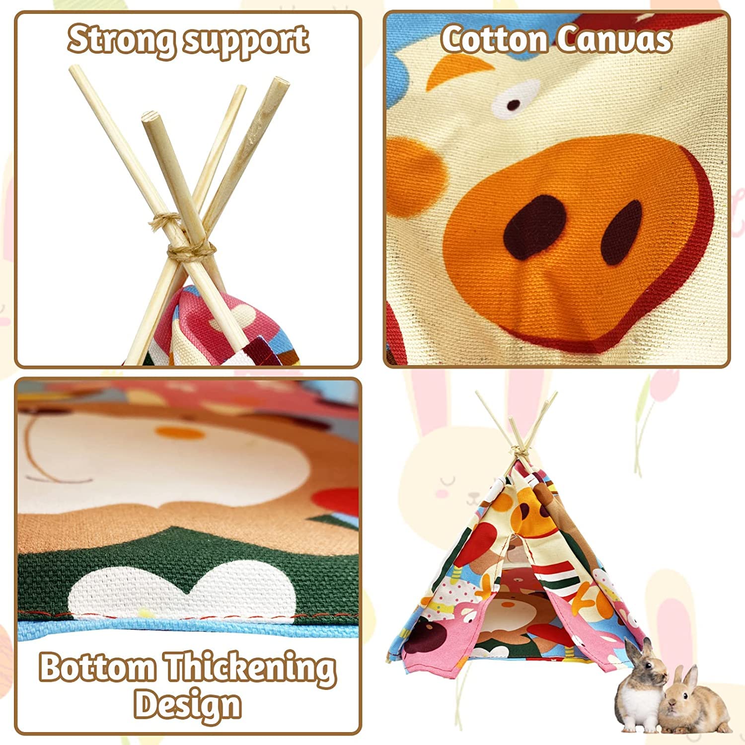 Die Quastenvorhänge auf beiden Seiten sind nicht nur niedlich, sondern sorgen auch für gute Belüftung. Dein Tierchen hat Rückzugsmöglichkeiten, aber trotzdem frische Luft. Und die Quasten geben dem Zelt diesen besonderen Charme.