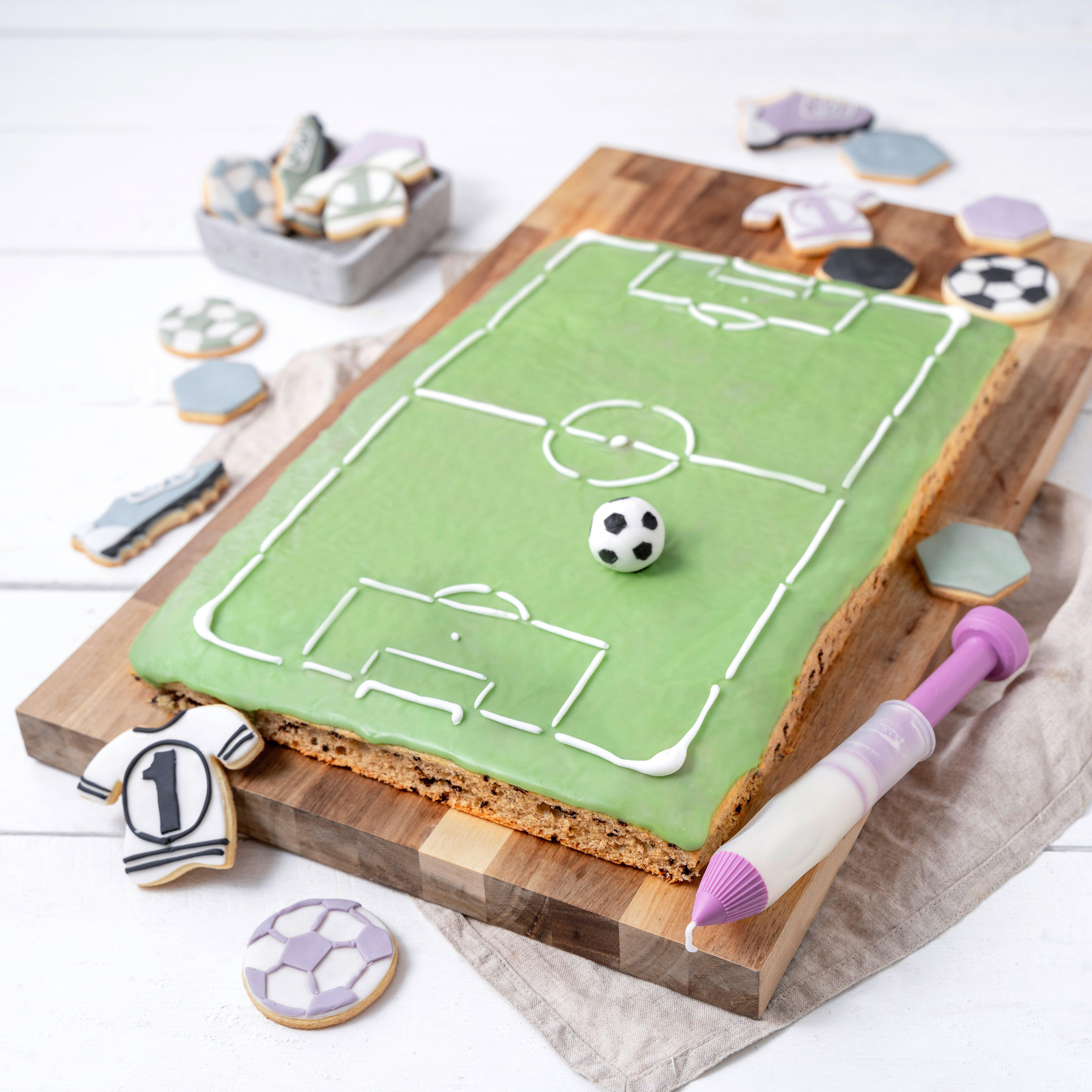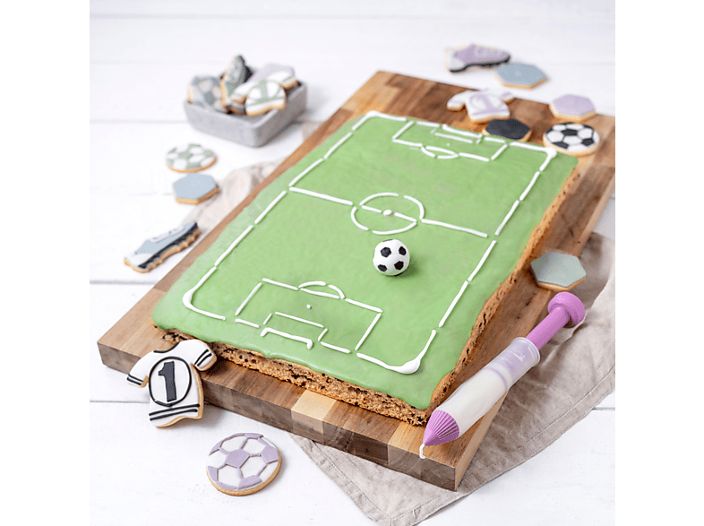 Zenker steht seit über 100 Jahren für Qualität im Backbereich, und das merkt man diesem Blech an. Mit der inkludierten Fußballfeld-Schablone verwandelst du jeden langweiligen Kuchen in ein spielbereites Fußballfeld. Ideal für Geburtstage, Public Viewings oder einfach nur, um deine Liebsten zu überraschen. Inklusive 5 Jahren Herstellergarantie - da backst du mit gutem Gefühl!