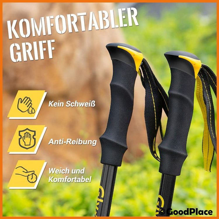 Für alle, die gerne in den Bergen unterwegs sind: Diese Alpinus Wanderstöcke sind absolute Leichtgewichte! Aus Carbon gefertigt wiegen sie nur 200g pro Stock - das merkst du kaum im Rucksack. Das geniale Falt-System: In Sekunden aufgebaut und wieder auf 36cm zusammengeklappt. Die Höhe ist von 110-130cm verstellbar, also für fast jede Körpergröße perfect. Die Griffe aus EVA-Schaum liegen super in der Hand und die Handschlaufen geben zusätzlichen Halt. Mit im Lieferumfang: Verschiedene Aufsätze für Sommer und Winter. Ob auf Asphalt, Waldwegen oder im felsigen Gelände - damit bist du immer sicher unterwegs und entlastest deine Knie. Einfach unverzichtbar für jede Wanderung!