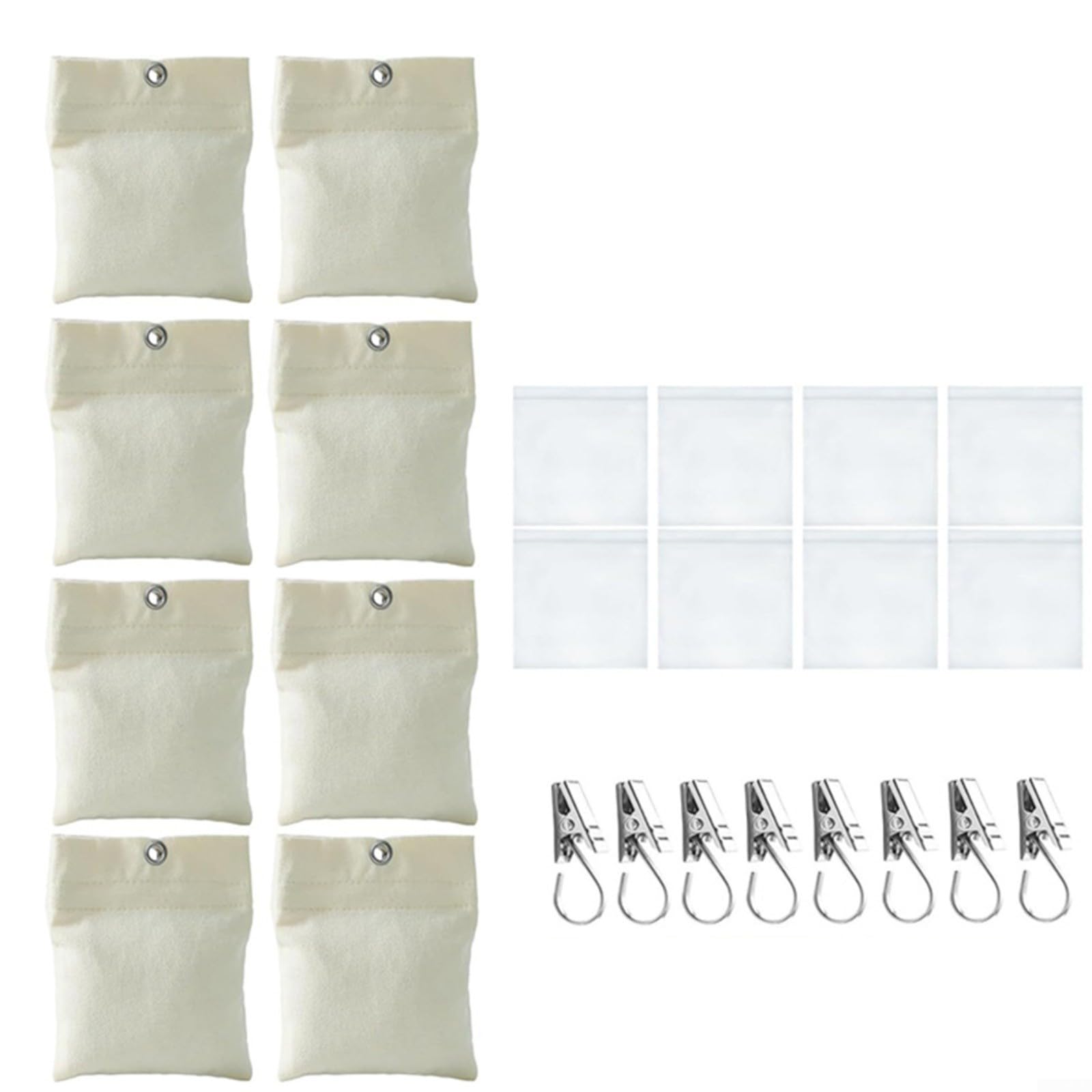 Windige Tage? Kein Problem! 💨 Dieses Vorhang-Gewichte-Set hält deine Outdoor-Vorhänge sicher an Ort und Stelle.\n\nIm Set enthalten:\n• 8 x Vorhang-Gewichtsbeutel\n• 8 x Metallklemmen\n• 8 x verschließbare PE-Beutel\n\nJeder Sandsack kann bis zu 425g Gewicht aufnehmen - perfekt um Vorhänge, Tischdecken oder Flaggen bei Wind zu stabilisieren. So bleibt dein Outdoor-Bereich immer ordentlich!\n\nDie Beutel sind aus robustem Canvas-Stoff - wetterfest und langlebig. Der selbstklebende Verschluss hält den Inhalt sicher fest.\n\nEinfache Befüllung:\n1. Sand oder Kies in PE-Beutel füllen\n2. PE-Beutel in Canvas-Tasche stecken\n3. Mit Metallclip am Vorhang befestigen\n\nPerfekt für:\n• Garten-Pavillons\n• Terrassen-Vorhänge\n• Markisen\n• Tischdecken\n• Zelt-Eingänge\n\nNie mehr flatternde Vorhänge bei der Gartenparty! Deine Dekoration bleibt genau dort, wo sie hingehört.\n\nDie weiße Farbe passt zu den meisten Vorhängen und ist dezent. Und wenn du die Gewichte nicht brauchst, lassen sie sich platzsparend verstauen.\n\nAlso: Hol dir dieses praktische Set und genieße windige Tage ohne Stress! Deine Outdoor-Einrichtung wird es dir danken! 🌤️