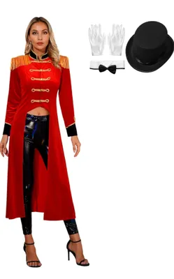 Manege frei! Diese atemberaubende Zirkusdirektor-Weste bringt den Zirkus direkt zu deiner nächsten Party. Aus weichem Samt (90% Samt, 10% Polyester) gefertigt, fühlt sie sich super luxuriös an. Mit goldenen Quasten und Borten verziert, wirst du zum absoluten Star jeder Veranstaltung. Die ärmellose Jacke mit Revers-Kragen und Knopfverschluss ist einfach an- und auszuziehen. Kombiniere sie mit einer Anzughose, Lederhose oder einem Rock - dazu Handschuhe, Peitsche oder Hut und dein Outfit ist perfekt! Ideal für Halloween, Mottopartys, Kostümbälle oder Bühnenauftritte. Wichtig: Schau dir vor dem Kauf unbedingt die Größentabelle im Bild an, damit die Weste auch perfekt passt. Mach die Party zu deiner persönlichen Show!