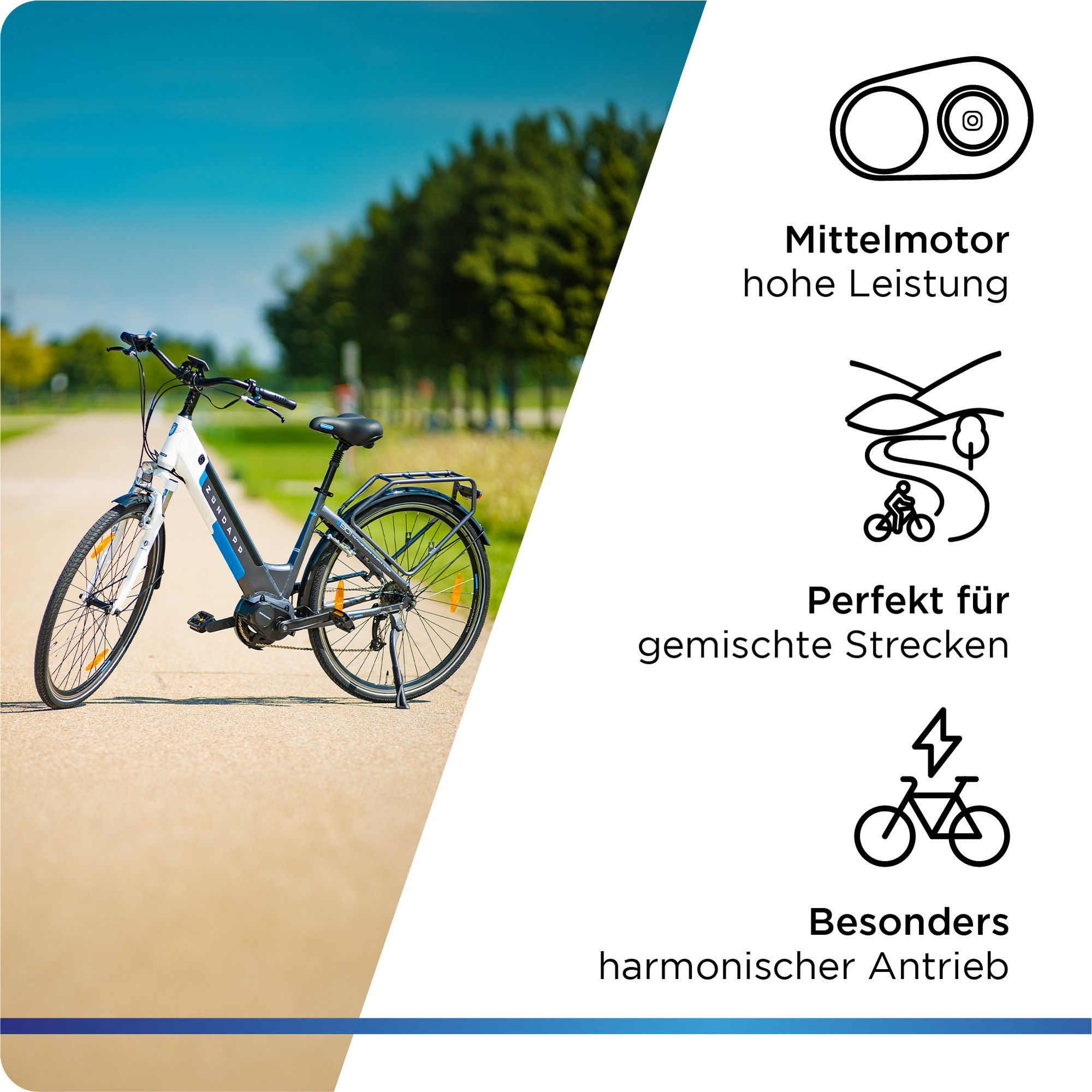 Das Zündapp Z502 - dein perfekter Begleiter für die Stadt! Mit dem tiefen Einstieg steigst du super easy auf und ab - praktisch bei Ampeln und vielen Stopps. Der stabile Aluminiumrahmen und die Federgabel von Zoom machen jede Fahrt zum Comfort-Erlebnis. Der leise Ananda Motor mit bis zu 40 Nm Drehmoment unterstützt dich bis 25 km/h und meistert auch leichte Steigungen problemlos. Der 522 Wh Akku am Gepäckträger bringt dich bis zu 130 km weit - mehr als genug für den Alltag! Die Shimano Nexus 7-Gang Nabenschaltung schaltet super sauber und ist kaum wartungsintensiv. Das moderne TFT Farbdisplay zeigt alle wichtigen Daten an und per Bluetooth connectest du easy mit der Ananda Ride App. Voll ausgestattet nach StVZO mit Licht, Schutzblechen und Rahmenschloss - sofort startbereit! Das Bike kommt 98% vormontiert, nur Lenker gerade stellen, Pedale montieren und los geht's! Perfekt für den Stadtverkehr, Einkäufe und entspannte Ausflüge.