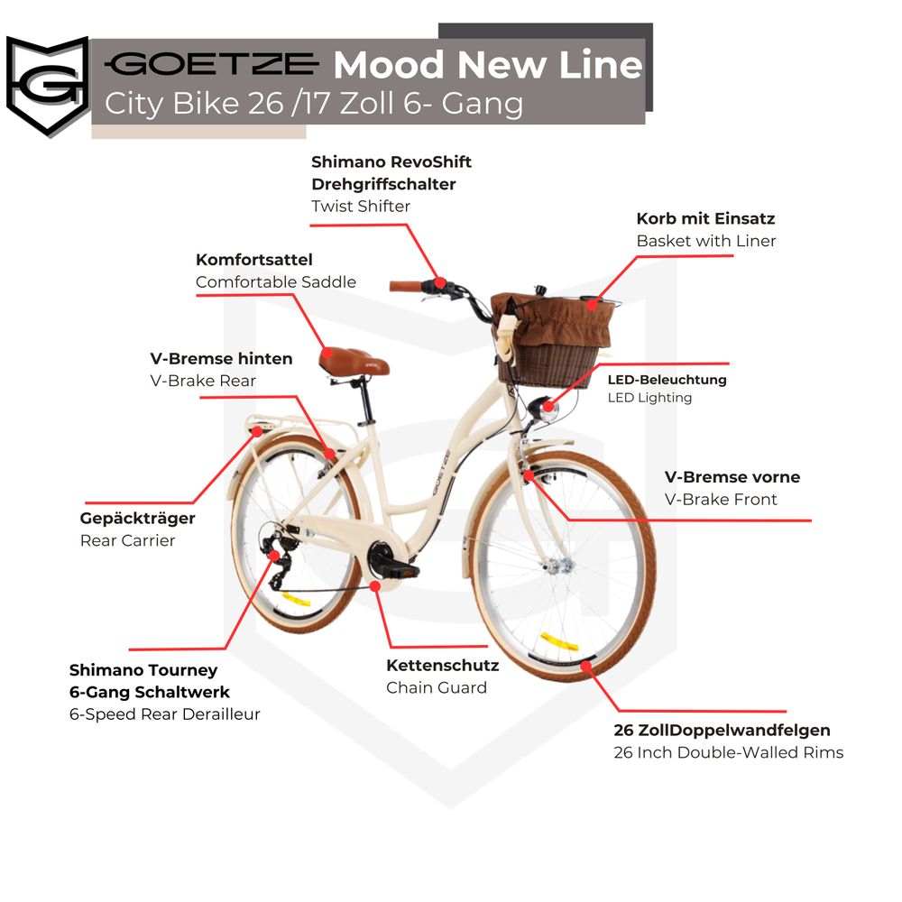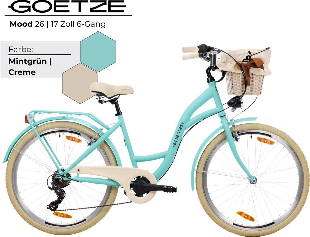 • Goetze Mood 26 Zoll Damen Citybike - 6-Gang Retro Fahrrad Mit Korb