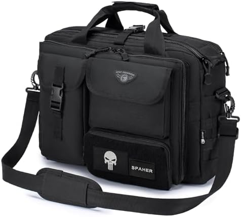 Stylish und funktional - diese taktische Aktentasche von GES ist der perfekte Begleiter für Beruf, Reisen und Outdoor-Aktivitäten. Mit gepolsterter Laptophülle für bis zu 15,6 Zoll (43,9cm) Geräte und praktischem Anti-Kollisions-Pad. Hergestellt aus wasserabweisendem 600D-Nylon mit wasserabweisendem Futter für optimalen Schutz deiner Elektronik. Zahlreiche Taschen und Fächer organisieren Mouse, Netzteil, Handy und Kabel perfekt. Das MOLLE-System an den Seiten ermöglicht das Anbringen zusätzlicher Ausrüstung. Mit bequemem, verstellbarem Schultergurt und faltbarem Griff für maximalen Tragekomfort. Perfekt für Büro, Schule, Wandern oder Reisen. Die doppelten Reißverschlüsse gewährleisten einfachen Zugang und lange Haltbarkeit. Mach deinen Alltag organisiert und stylisch mit dieser vielseitigen Tasche, die sowohl im urbanen Umfeld als auch in der Natur überzeugt.