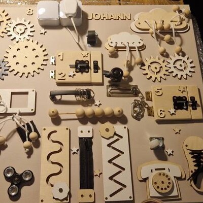 Beschäftigung die schlau macht! Dieses bunte Busy Board Zubehör verwandelt langweilige Stunden in spannende Lernabenteuer. Mit der klingenden Glocke und verschiedenen Elementen fördert es spielerisch die Feinmotorik, Konzentration und Sinneswahrnehmung deines Kindes. Einfach an bestehende Boards anbringen oder neue kreative Projekte damit umsetzen. Super für unterwegs im Auto, im Wartezimmer oder zu Hause. Aus robustem PP-Material das auch wildes Spielen aushält. Das perfekte Geschenk für neugierige Entdecker ab 3 Jahren!