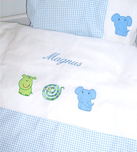 • Babybettwäsche Set 80x80cm - Zug Motiv, Blau-weiß Kariert