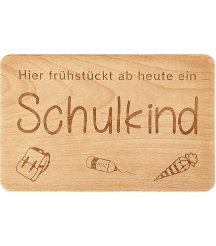 Ein ganz persönliches Geschenk für den großen Tag! Dieses wunderschöne Frühstücksbrettchen aus massivem Buchenholz wird mit dem Namen des Kindes, dem Einschulungsdatum und einer persönlichen Widmung graviert - so wird die Brotzeit zur bleibenden Erinnerung!\\n\\nHergestellt aus FSC-zertifiziertem Buchenholz aus nachhaltiger Forstwirtschaft in der EU. Das unbehandelte Naturholz ist nicht nur lebensmittelecht, sondern wirkt auch natürlich antibakteriell - perfekt für die tägliche Pausenbrottzeit!\\n\\n• Maße: 24 x 15 x 1 cm\\n• Material: Massivholz Buche (FSC 100%)\\n• Individuelle Gravur möglich\\n• Naturbelassen, unbehandelt\\n• Leicht antibakteriell\\n• Handwäsche empfohlen\\n• Hergestellt in Deutschland\\n\\nEinfach beim Kauf die gewünschten Daten angeben - Name, Datum und optional eine Widmung. Unser Team in Mönchengladbach graviert dann mit viel Liebe zum Detail dein persönliches Brett. Perfekt für Eltern, Großeltern oder Paten, die dem ABC-Schützen eine bleibende Freude machen wollen!